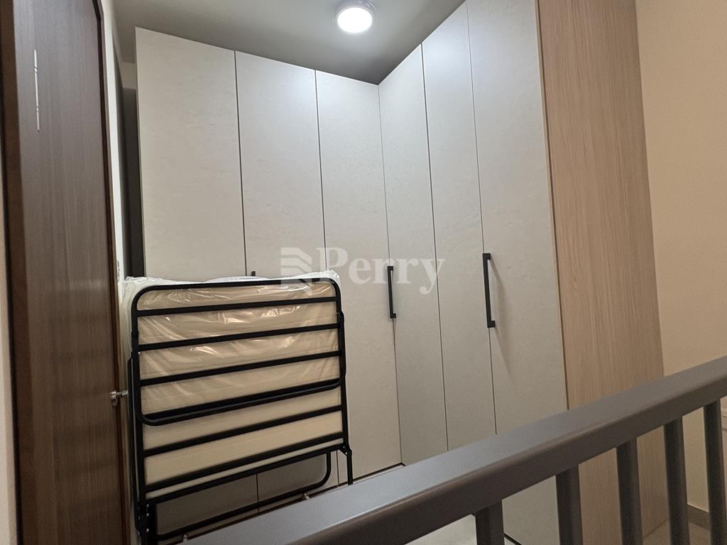 A duplex 1 bedroom Apartment having a cosy open-plan kitchen, living, and breakfast, leading onto a balcony on the 1st floor with an internal spiral staircase or main staircase leading to the 2nd floor, having a 1 double bedroom with another terrace, and a separate bathroom. Included are a dishwasher and a washing machine.