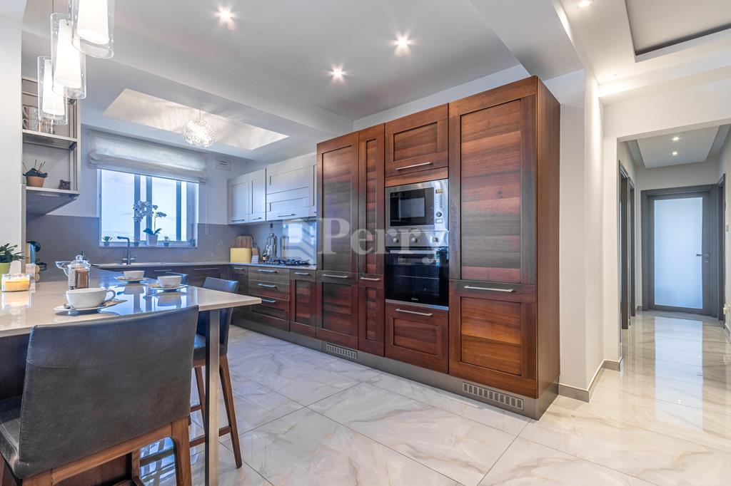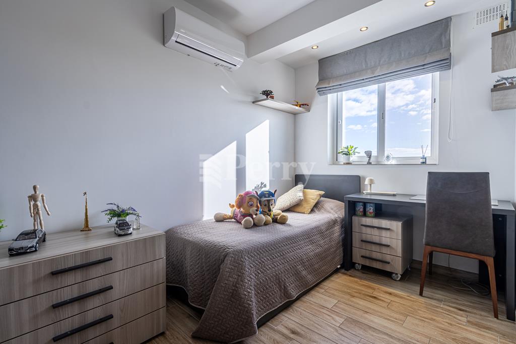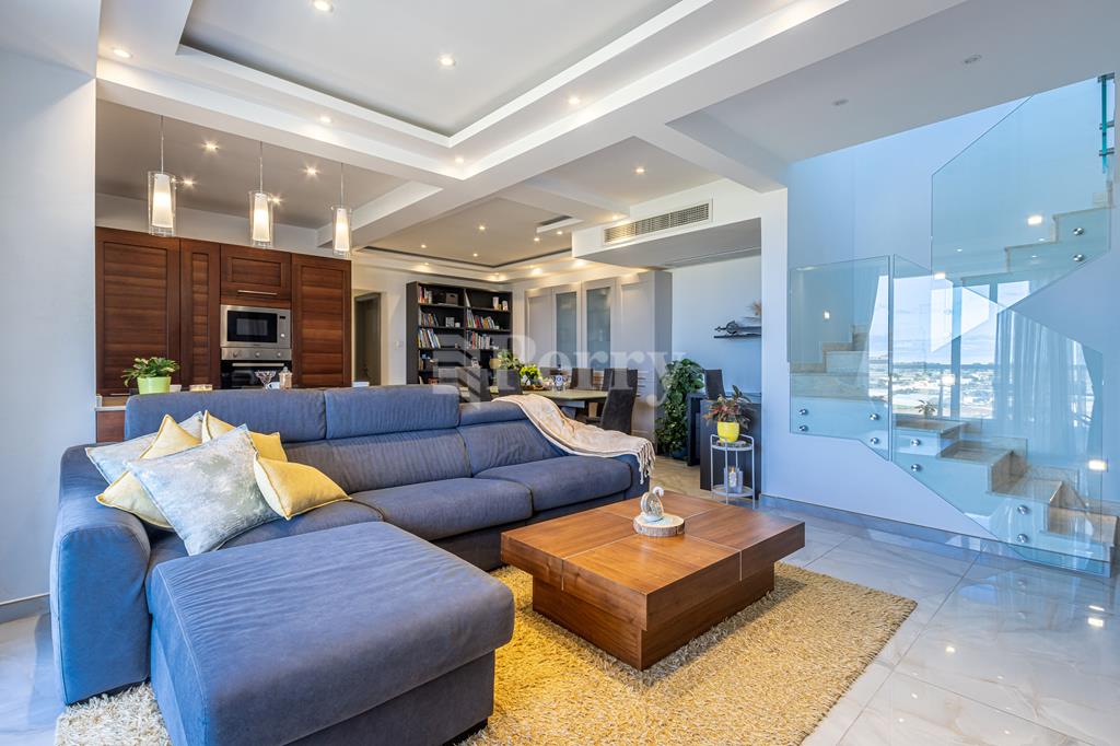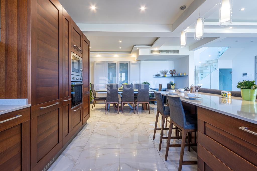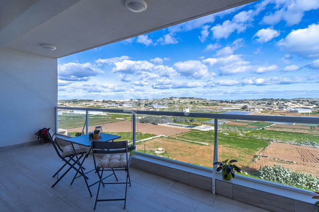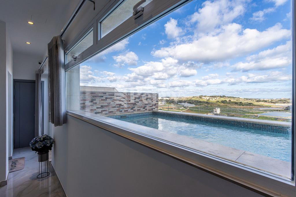 Set in a peaceful and highly desirable location, located within easy walking distance of the idyllic Gnejna Bay, this unique DUPLEX PENTHOUSE commands uninterrupted 360° views across open countryside and the sea. The property is exceptionally bright, generously proportioned, and being sold fully furnished for immediate enjoyment. The main level has a stylish open-plan kitchen, dining, and living space that extends onto a scenic terrace, ideal for hosting guests or simply soaking in the views. Three bedrooms are found on this level, including a master bedroom with en-suite facilities, together with a contemporary main bathroom. The upper floor, accessible both internally and via lift, enhances the home’s versatility, this level includes a washroom with a kitchenette, a comfortable secondary lounge with sofa bed, and an additional shower room, perfect for guests or independent living. The outdoor area is truly impressive, boasting an expansive terrace with a large 15,000-litre swimming pool, jacuzzi, and ample space for alfresco dining and relaxation, all framed by spectacular panoramic scenery. Additional features include five air-conditioning units, eleven solar panels, terrace CCTV, full ownership of airspace, in a lightning-protected, low-density block of just six units. An interconnecting four-car garage with storage is included in the price.