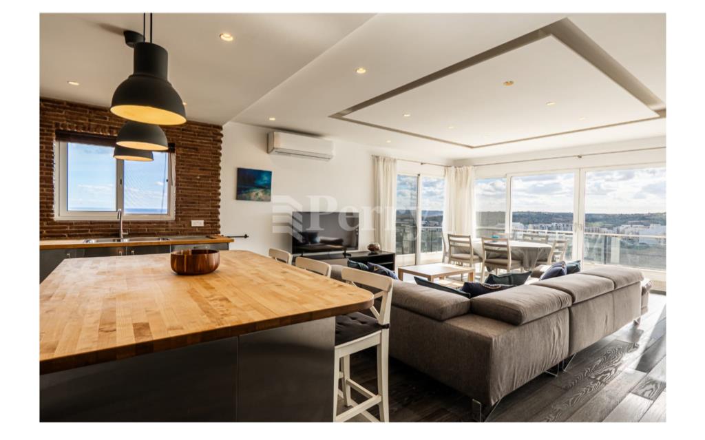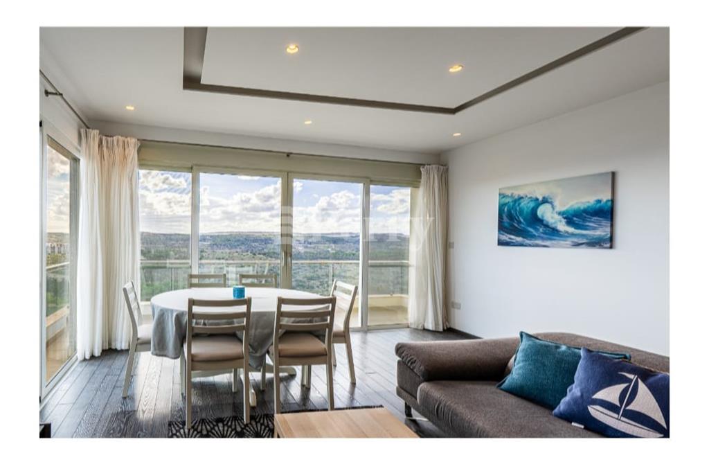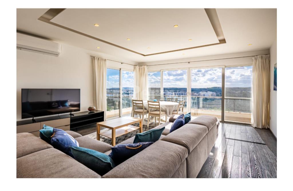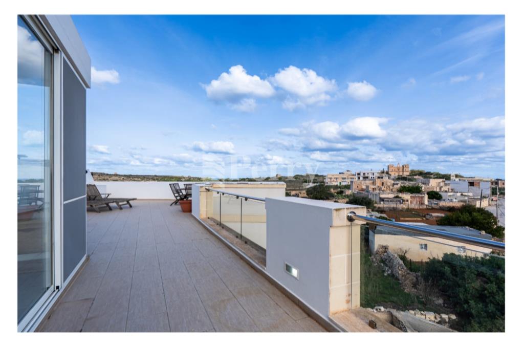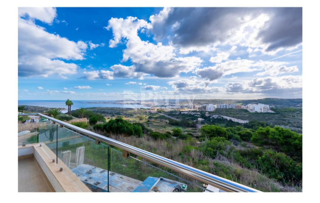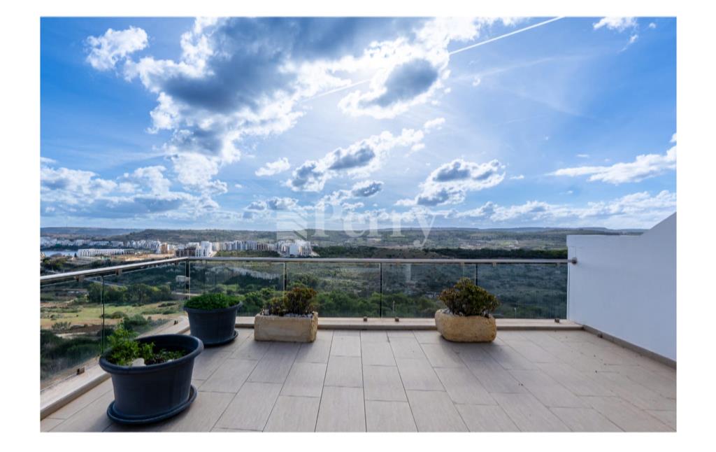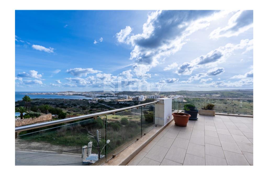 Situated in the peaceful and highly sought-after area of Selmun, this beautifully laid-out three-bedroom duplex penthouse offers generous indoor and outdoor living spaces together with spectacular, unobstructed panoramic views. The second-floor level comprises a bright open-plan kitchen, dining, and living area leading onto both front and back terraces, ideal for entertaining or relaxing while enjoying the surrounding scenery. The property includes three bedrooms, one of which is currently set up as a spacious walk-in wardrobe, a main bathroom, and an ensuite. On the upper (third) level, one finds a versatile additional room that can be used as a home office, games room, or extra lounge area, complemented by a spare toilet and a large surrounding terrace — perfect for outdoor dining and enjoying the stunning views. The property boasts uninterrupted views of Selmun Palace, Mistra Bay, St Paul's Bay, Mizieb, extending all the way to Golden Bay, making it a truly unique opportunity for those seeking tranquility, space, and exceptional views.