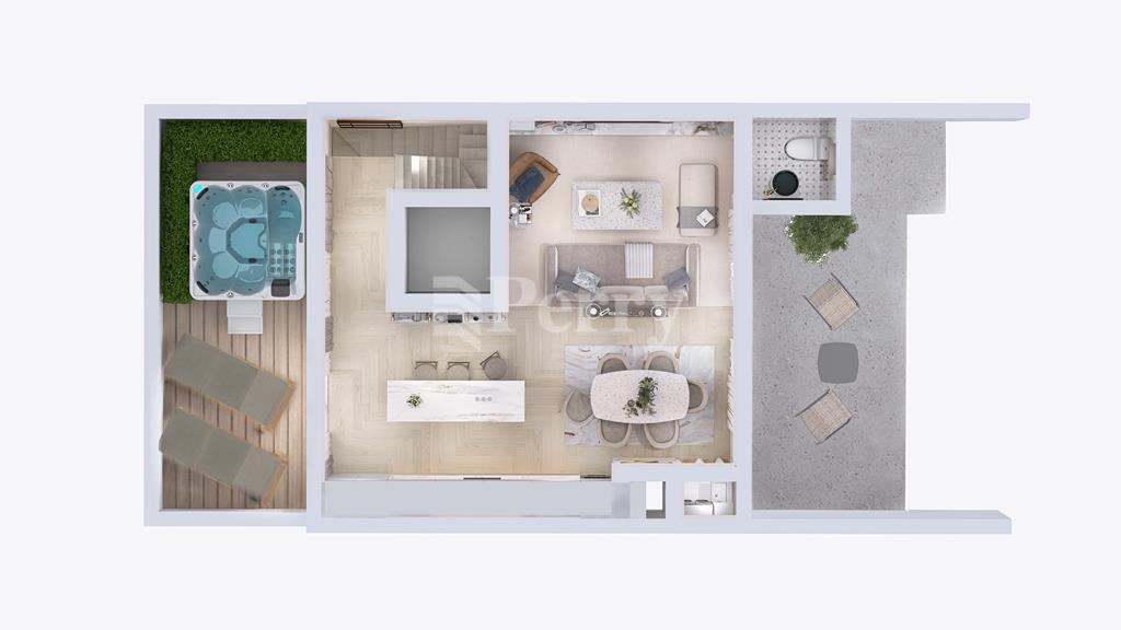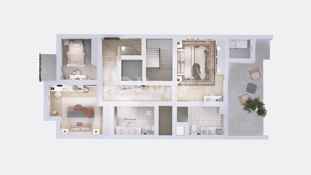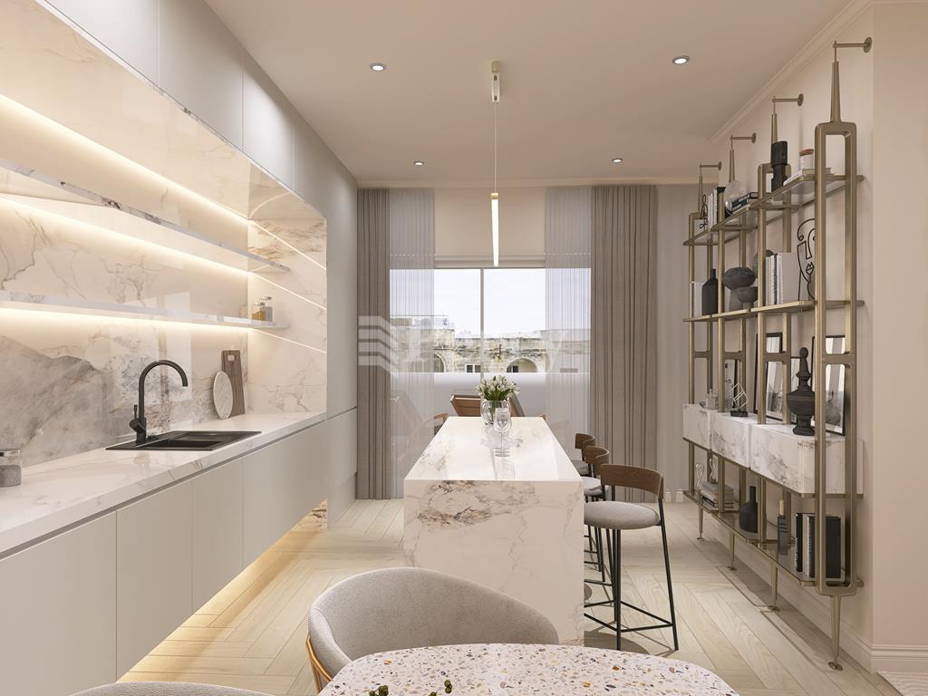 DUPLEX PENTHOUSE for sale on plan in the sought-after area of Ta’ Xbiex, forming part of a small and exclusive block of only five apartments and served with lift access. On the first level, the layout features three bedrooms, the main with ensuite facilities and access to a front terrace with a dedicated washroom, a main bathroom, a box room that can be used for storage, and a small back balcony. On the second receded floor one can find the open-plan kitchen, living and dining area leading onto a front terrace, a guest toilet and a back terrace with a jacuzzi. The property is situated on the 5th and 6th floors of the block and measures 113 sqm internally and 57 sqm externally, totalling 170 sqm. Being sold finished excluding bathrooms and internal doors, and offered freehold, this property presents an excellent residential or investment opportunity in a prime central location close to the seafront and all amenities.