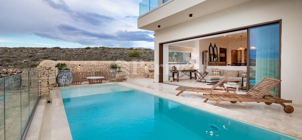 Located in the serene northern part of the Island, this magnificent villa in Manikata offers breathtaking country views and a sense of complete tranquillity. Designed with luxury and comfort in mind, the property boasts an open plan living space featuring a state-of-the-art, fully fitted kitchen, dining, and lounge area, all bathed in natural sunlight thanks to its south-west orientation. Large glass doors open onto a spacious outdoor deck with an infinity pool, perfect for entertaining or relaxing while enjoying uninterrupted views. Upstairs, three double bedrooms each benefit from en-suite bathrooms, while the basement level can include a self-contained flatlet with a double bedroom and bathroom that interconnects with the main house. The villa is fully air-conditioned, equipped with a lift servicing all floors, and complemented by a two-car garage and carport. With its refined finishes, smart layout, and idyllic location, this is truly one of the finest properties currently on the market.