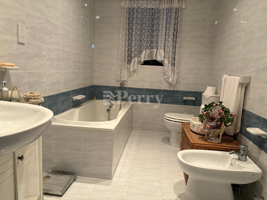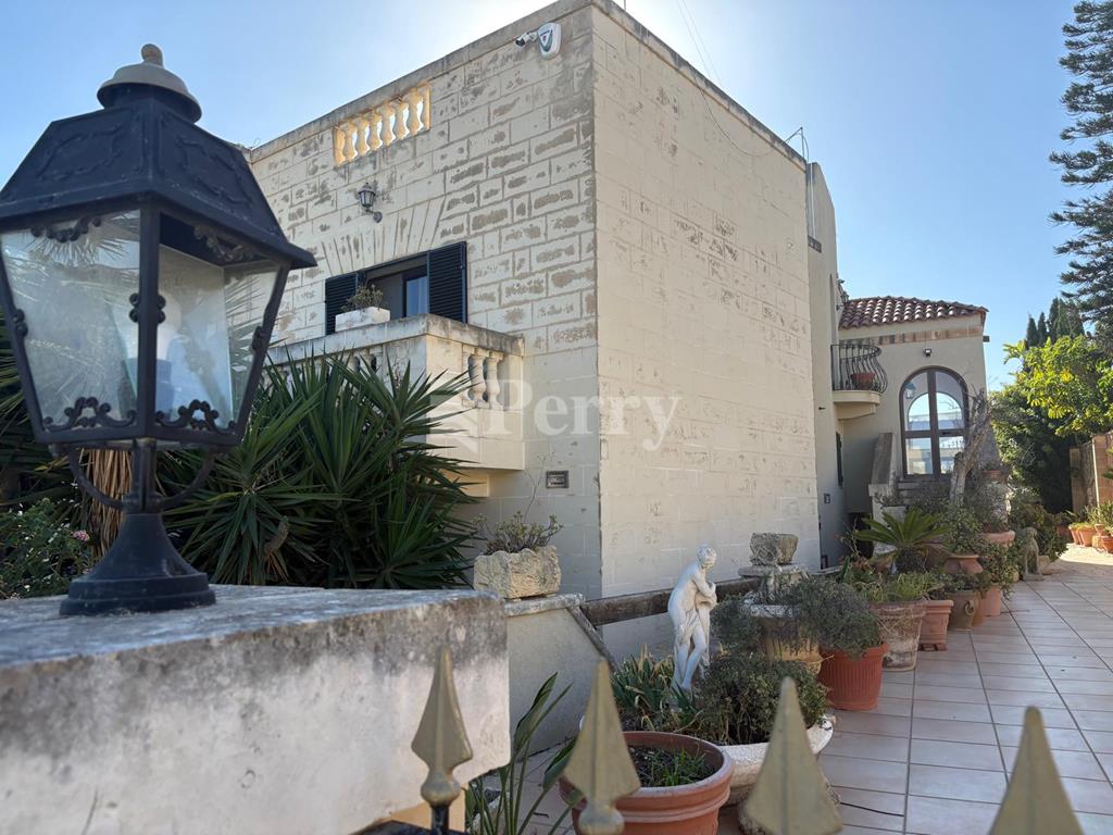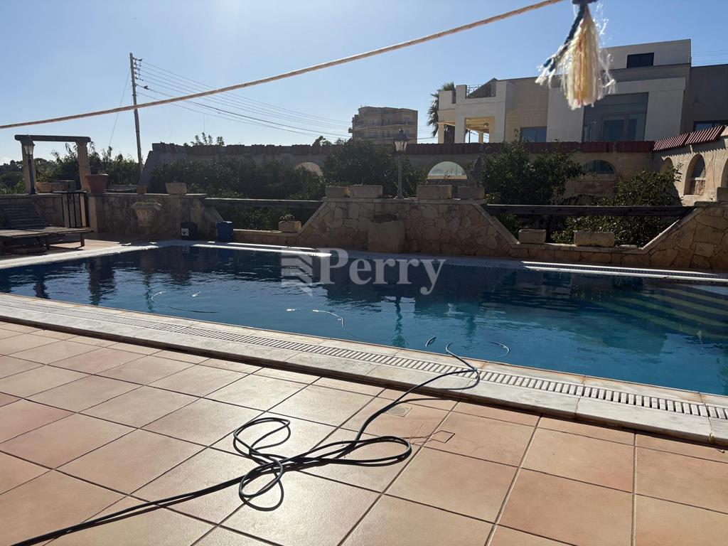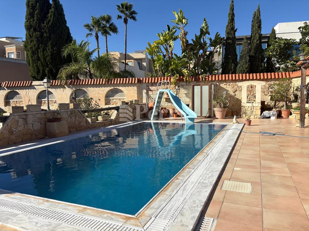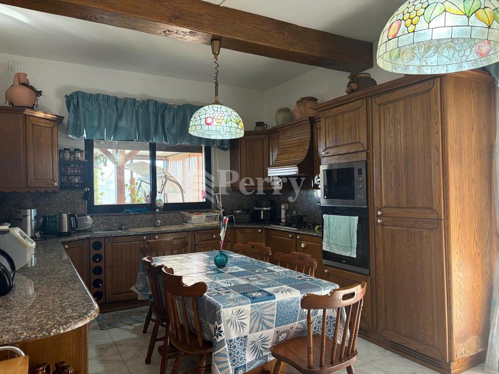 A fully detached Villa on a Tumolo of land having extensive views, enjoying a large pool with deck area, a separate mature garden with many types of citrus trees, a BBQ Area and a back porch for outdoor dining or a closed off area. Side gardens on both sides, with a 4 car carport. While entering the house you have a wide hallway and a welcoming reception area which leads to all rooms, a formal dining and sitting area, a kitchen/breakfast leading on the terrace and pool area. Total of 5 bedrooms and 4 bathrooms, 3 on the main floor, 2 on the lower level, also having a cinema, with a small reception area, a 4 car garage and a large workshop, which could also be transferred to more car space.