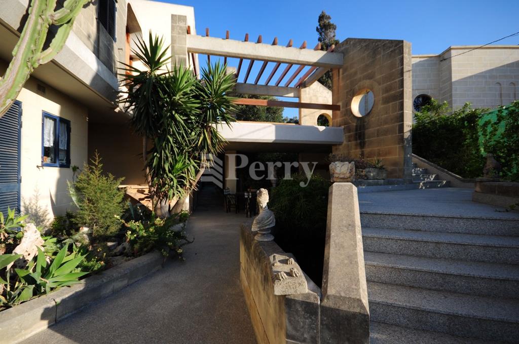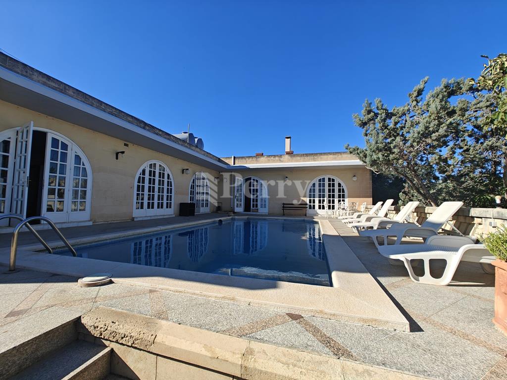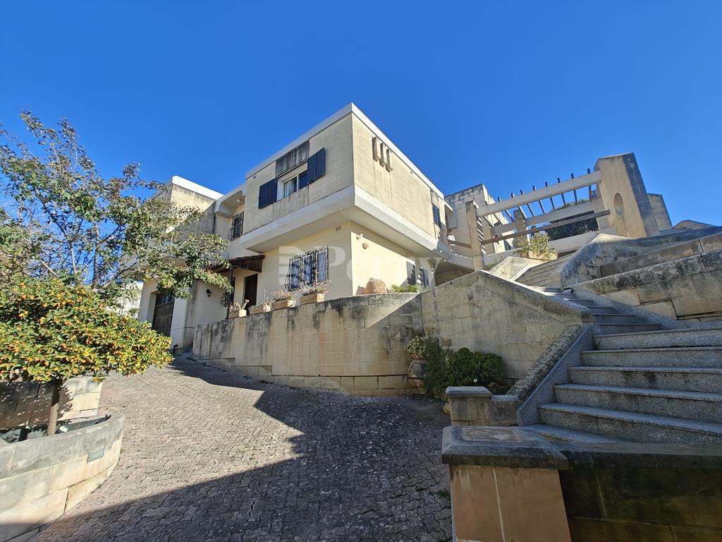 A gracious DETACHED VILLA perfectly positioned on high grounds and commanding open views as far as Valletta and beyond. Built to a spacious design on a plot size of approx. 1,137sqm, the upper-level boasts of a wide entrance hall, study, sitting, dining, living, kitchen/breakfast, pantry, all primary rooms leading out onto a sunny garden with swimming pool and entertaining area. Two large bedrooms and 2 bathrooms are found on this floor. Downstairs on ground floor level one finds a further 4 bedrooms, 2 bathrooms, laundry and a comfortable 2 car garage. The property also enjoys a large carport that could comfortably park 5 cars, and a surrounding garden with a charming citrus grove offers further entertaining possibilities.