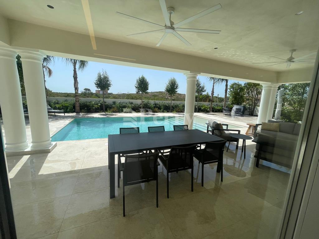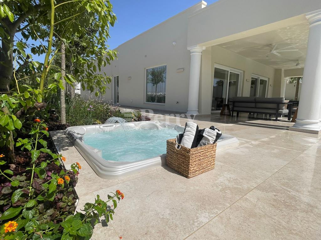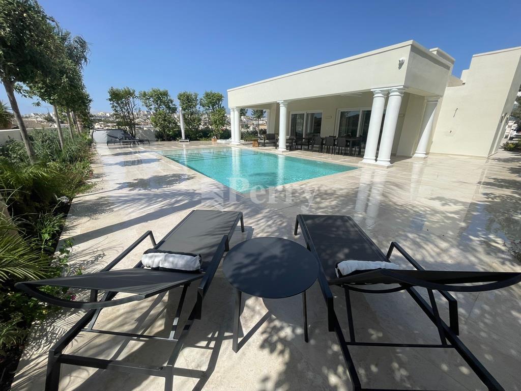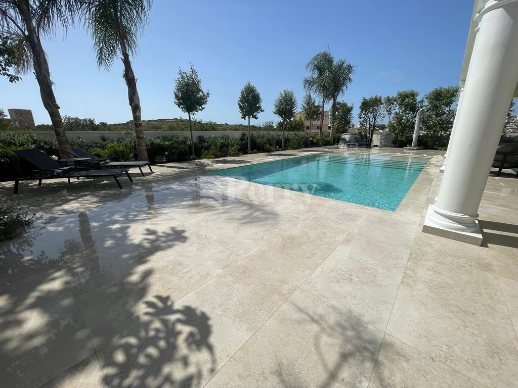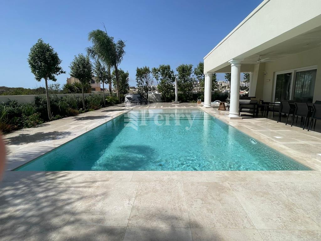 Set on approximately 1000sqm of land, we are proud to offer this newly built, fully DETACHED VILLA, with surrounding gardens, enjoying a superb position in this beautiful, privileged and sought after villa area. The property is surrounded by countryside and is close to amenities. The Villa provides an ideal location for families looking for privacy & security. The property comprises a lovely surrounding garden, a large swimming pool surrounded by a very spacious pool deck area ideal for entertaining. The property boasts outstanding views to the open countryside and sea beyond. This immaculately presented VILLA features bright and spacious open plan living space with floor to ceiling glass doors leading to the pool area, a modern state of the art kitchen, 3 bedrooms, 4 bathrooms, 2 ensuit. Property also includes a 1 car lock-up garage and car port for 2 further cars with a separate entrance. Other features include a jacuzzi, “Villeroy & Bosch” sauna, an alarm system and air-conditioning throughout. Another very unique and attractive feature of this property is a small gate which leads from the private property to the open countryside, fantastic for country walks and as an extra play area for children.
