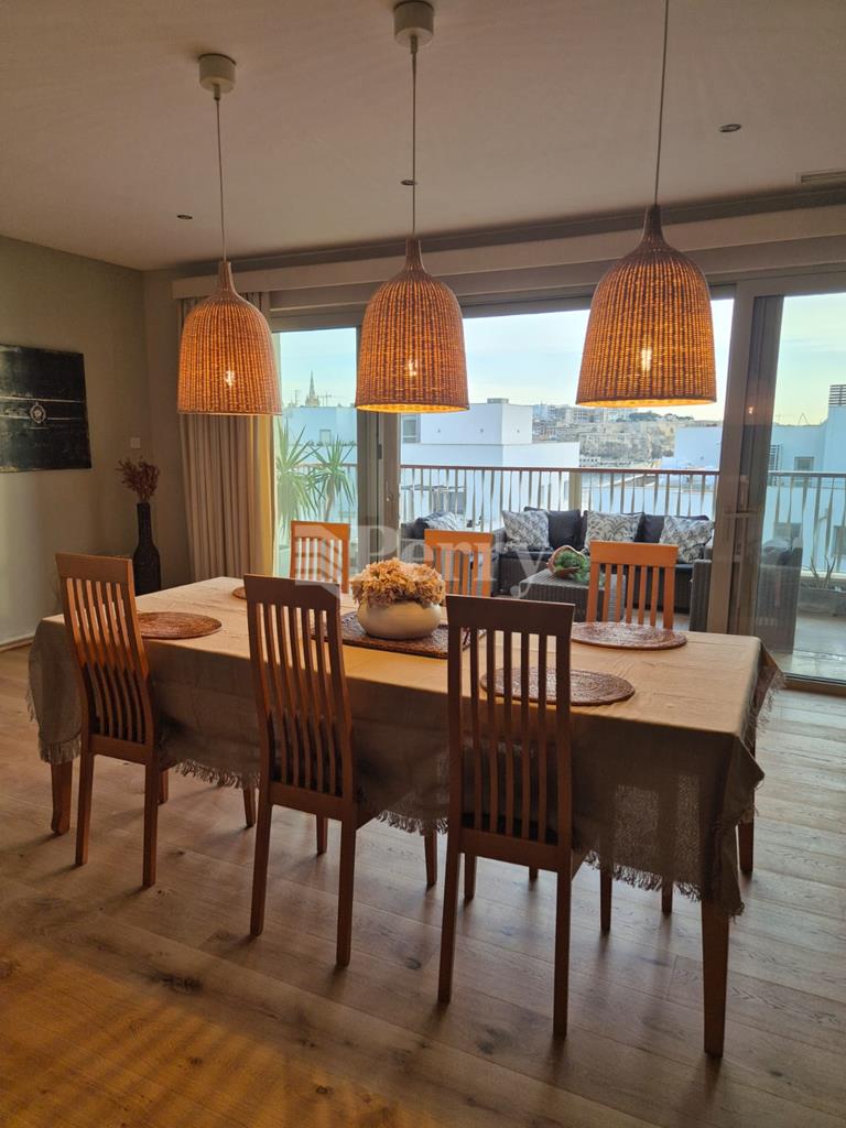 Tigne Point. A brand new, beautifully furnished APARTMENT taking in stunning views of Valletta, Manoel Island and the open sea from its spacious front terrace. Forming part of this exclusive residence, accommodation comprises sitting / dining room, living room with plasma television, bright kitchen / breakfast with sea views, bathroom, guest toilet, laundry room, utility room, 3 balconies and garage space.