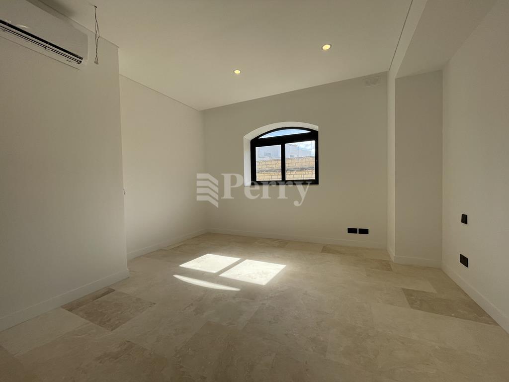 We are pleased to present as EXCLUSIVE AGENTS a great opportunity to acquire a wonderful corner APARTMENT, located on a high floor and in the heart of Sliema.  The apartment is located in the most popular and picturesque urban conservation area,  just off Dingli Street with easy access to all amenities and the beachfront.  As you step inside, you are greeted by a spacious open plan room,  illuminated by large apertures that fill the space with natural light.  In this great open plan space, one finds a larger than usual kitchen/sitting/diming area.  Down a lateral corridor one finds three large bedrooms, two with en suit bathrooms and each with balconies and apertures letting in ample light.  The property also benefits from an undivided portion of the roof and a private room on the roof ideal for storage. This building also offers parking possibilities in a shared carport area. The property has been recently renovated by the current owner to very high standards and is being offered unfurnished. FREEHOLD.