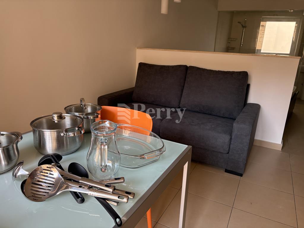 An ample spaced and well done up studio Apartment with distant side sea views, having an open plan kitchen, breakfast, living room and double bed, washing machine, dryer, dishwasher and wi-fi, in a dedicated enclosure.  Also has well planned storage.