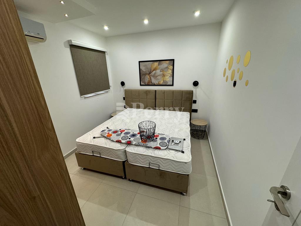 A modern Apartment offering an immaculate and smart interior in Xemxija, St. Paul’s Bay.  The property layout consists of 2 bedrooms, the main with an en-suite bathroom, a main bathroom, an open plan lounge, a fully equipped kitchen/dining area leading out onto the terrace overlooking the unobstructed green area. The Apartment is fully furnished, equipped and air-conditioned.