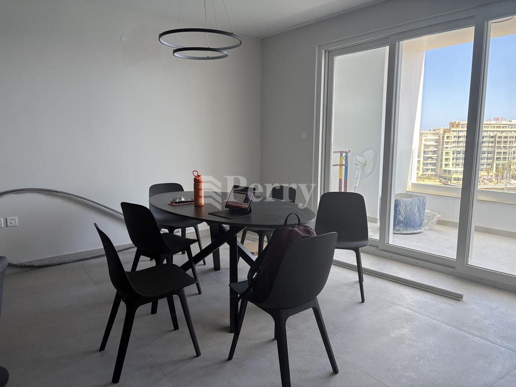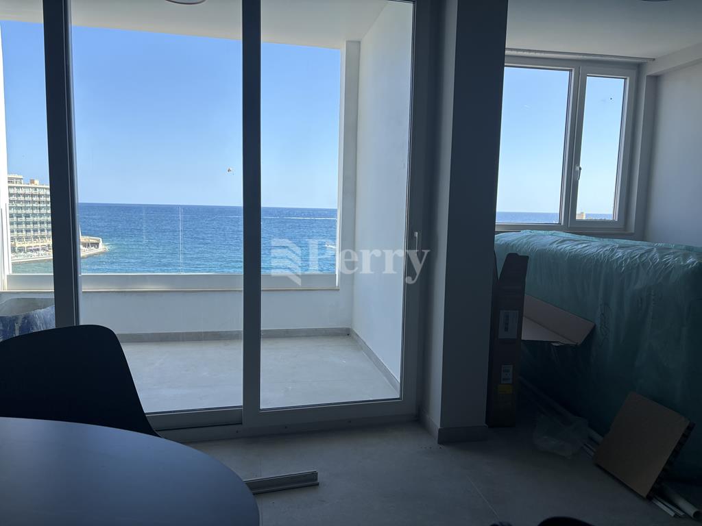 A elegant 6th floor seafront Apartment having unobstructed seaviews from a spacious terrace, having enough space for one to place a table and a few chairs to enjoy morning sunrise or an evening BBQ.  It comprises of an open plan kitchen designed with great taste and fully equipped with high end appliances, also boasting great views from the kitchen, a cosy living room with a sofa bed, useful for a guest sleep over, two bedrooms, two bathrooms, main bedroom with bathroom en-suite, a separate washroom with both a washing machine and a dryer and ample storage space.  At the back of the Apartment, there is a balcony which one can use to hang out laundry.