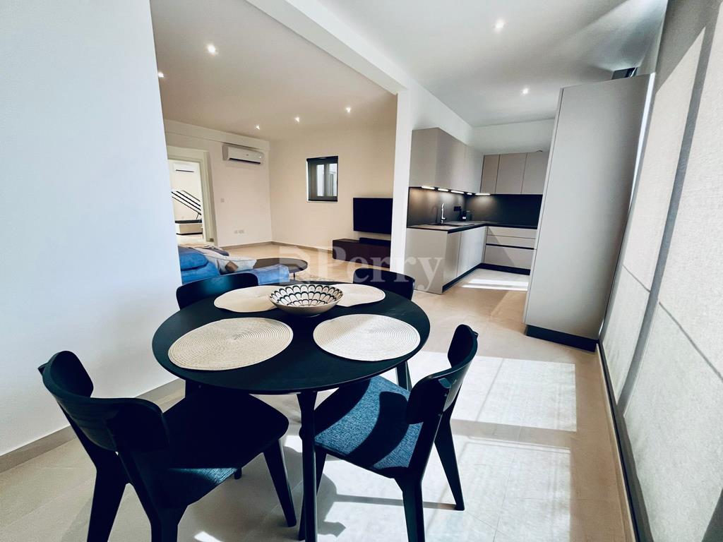 Situated in one of Malta’s most desirable locations, this elegant and contemporary apartment offers exceptional comfort and convenience. Found on the fifth floor of a modern block served with a lift, the property enjoys a prime position right in the centre of Sliema, just moments from the seafront, cafés, shops and all amenities. The apartment features a bright open-plan living, dining and kitchen area that leads onto a large balcony. It comprises two double bedrooms and two bathrooms, one of which is ensuite. Finished to high standards and fully air-conditioned throughout, the home is offered fully furnished and equipped for immediate occupancy. One car is also included for convenience.