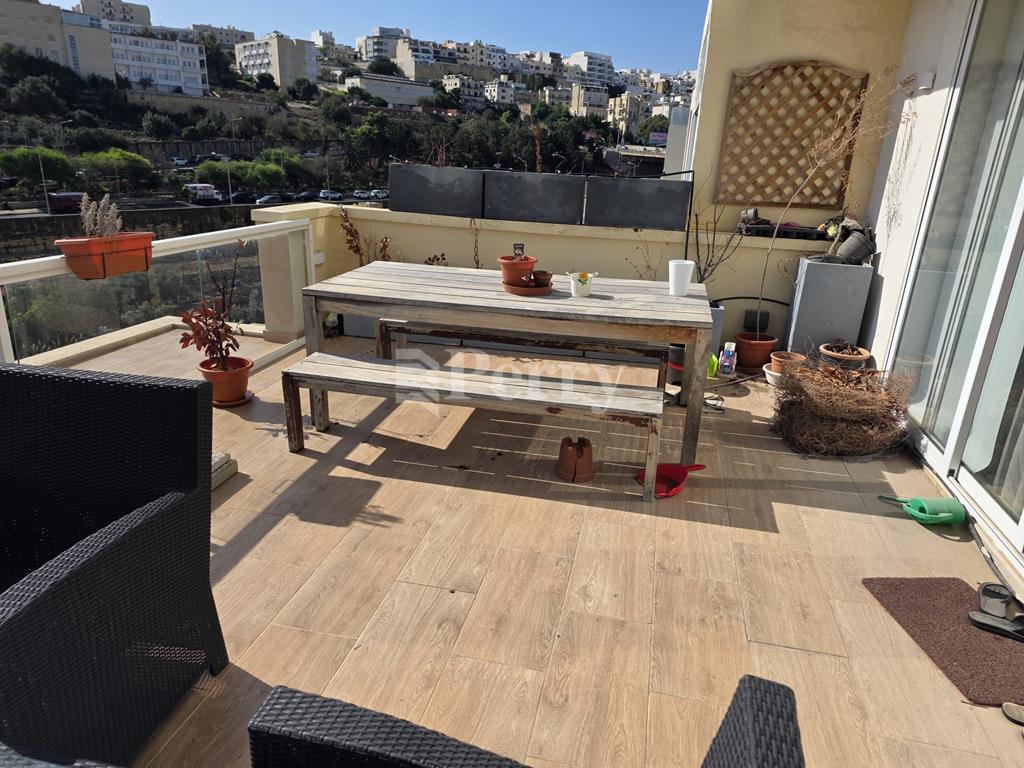 St Julians - A well kept, spacious two bedroom Apartment, having a large terrace with its living quarters enjoying beautiful open valley views, situated just off the picturesque Spinola Bay and the seafront.   Comprising hall, fitted kitchen/breakfast/sitting/dining, two bedrooms, two bathrooms (one bedroom ensuite), laundry and an underlying inter-connecting street level garage space.    SOLE AGENTS.
