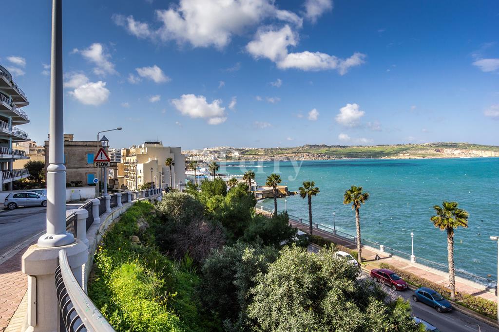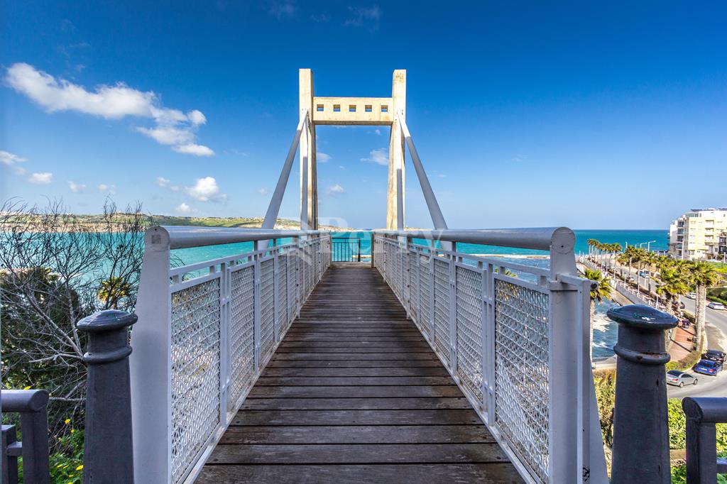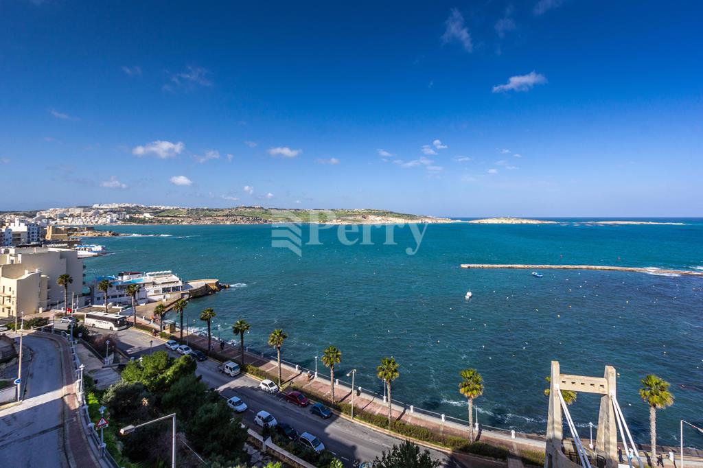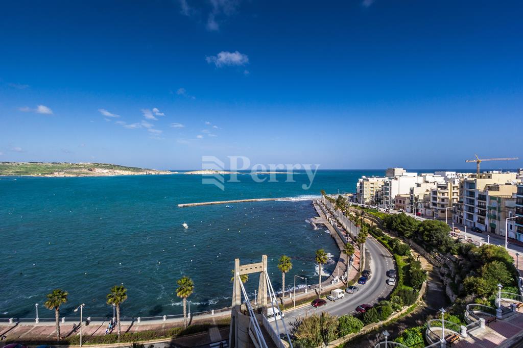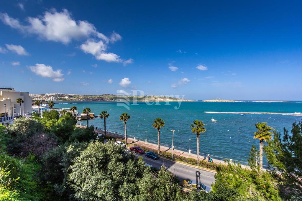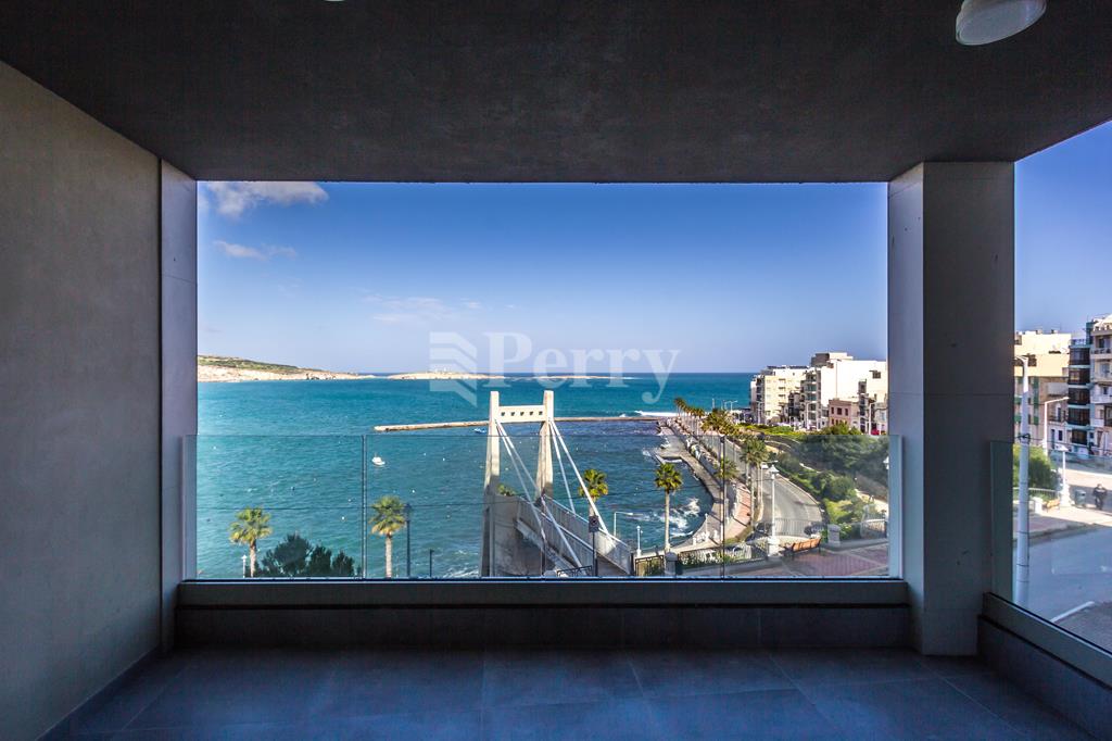 Newly built seafront block situated in the best area of St Pauls Bay, seconds away from the waterfront and most amenities. Property layout consists of an open plan kitchen / living / dining area enjoying stunning open sea views, pantry / store room, main bathroom (with underfloor heating), laundry room, three double bedrooms, master bedroom en-suite (with underfloor heating) with walk-in wardrobe and a back balcony. Property is being sold highly finished including bathrooms, internal doors and VRF AC system, with parquet flooring in all the bedrooms. Included is a 1-car lock up garage.