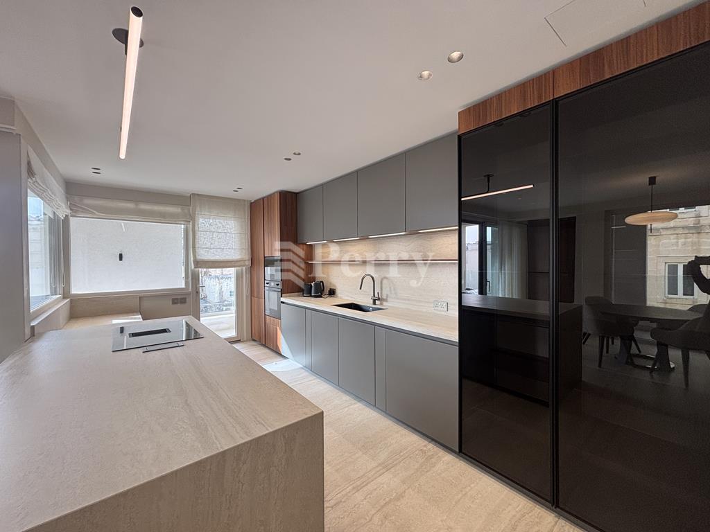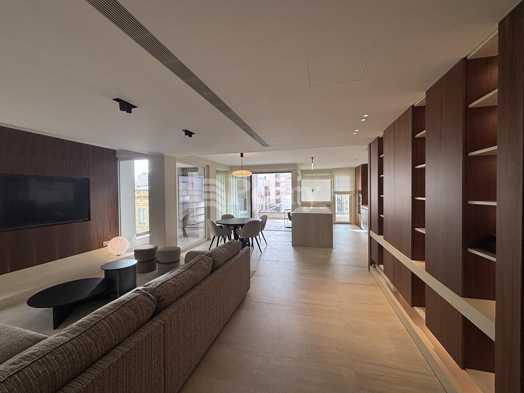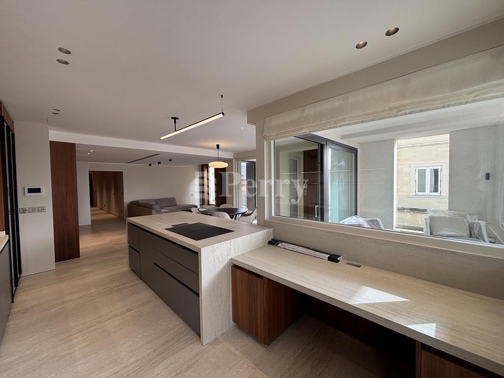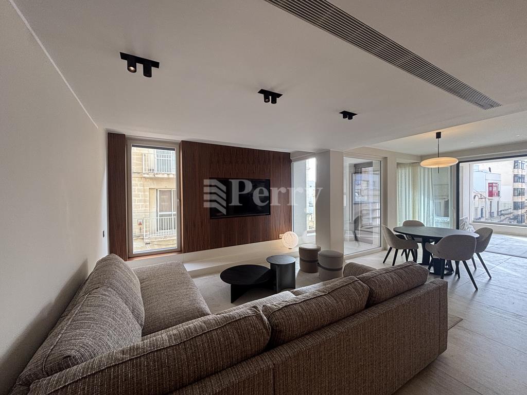 This beautifully designed, fully furnished third-floor corner apartment is set within one of Sliema’s most sought-after addresses and finished to exceptionally high standards, with no expense spared. The spacious layout features a bright open-plan living, kitchen, and dining area that opens onto a comfortable front terrace, ideal for outdoor dining and relaxation. A hallway leads to three well-sized double bedrooms, including a master bedroom with a stylish en-suite bathroom and ample storage space, complemented by a dedicated laundry room. Offering a rare combination of elevated privacy and immediate access to some of the area’s best restaurants, shops, transport links, and the promenade just minutes away, this luxurious apartment also includes a private car space serviced by an interconnecting lift for added convenience.