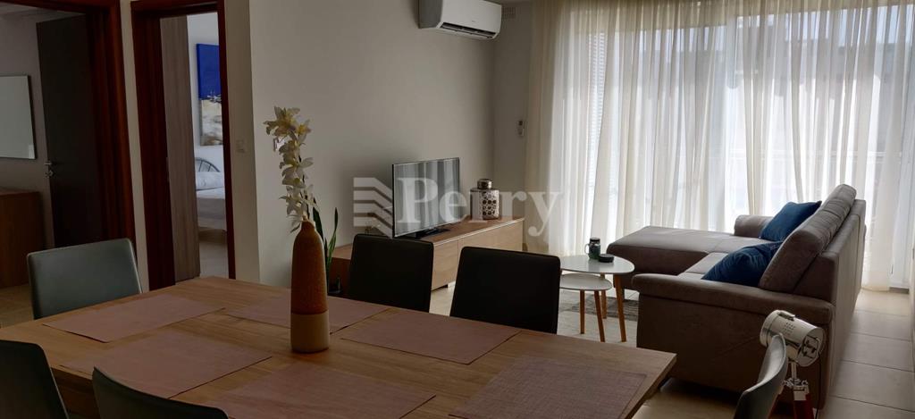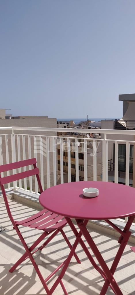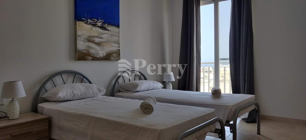 This fully equipped and air-conditioned property is located in the heart of Qawra, close to all daily amenities. It comprises two double bedrooms, including an en-suite shower room, a main bathroom, and an additional study fitted with a sofa bed. The apartment features a separate laundry room with both a washer and dryer, as well as a bright open-plan, fully fitted kitchen, living, and dining area leading onto a front terrace enjoying distant sea views. Finished to a good standard throughout, the property offers comfortable and practical living in a highly convenient location.