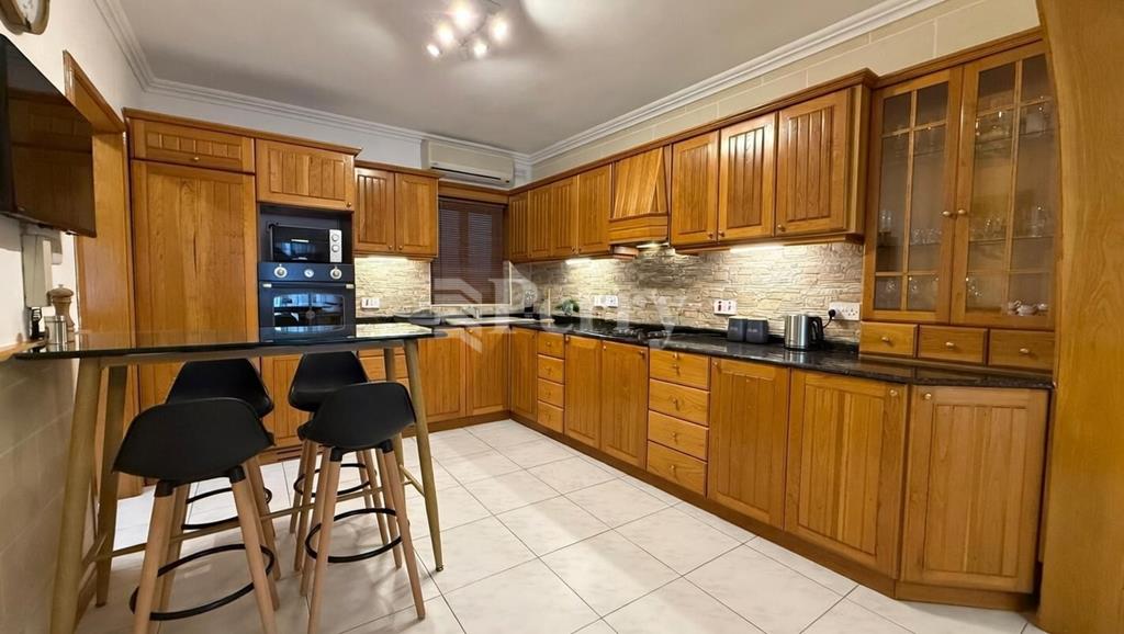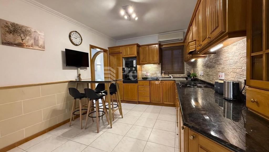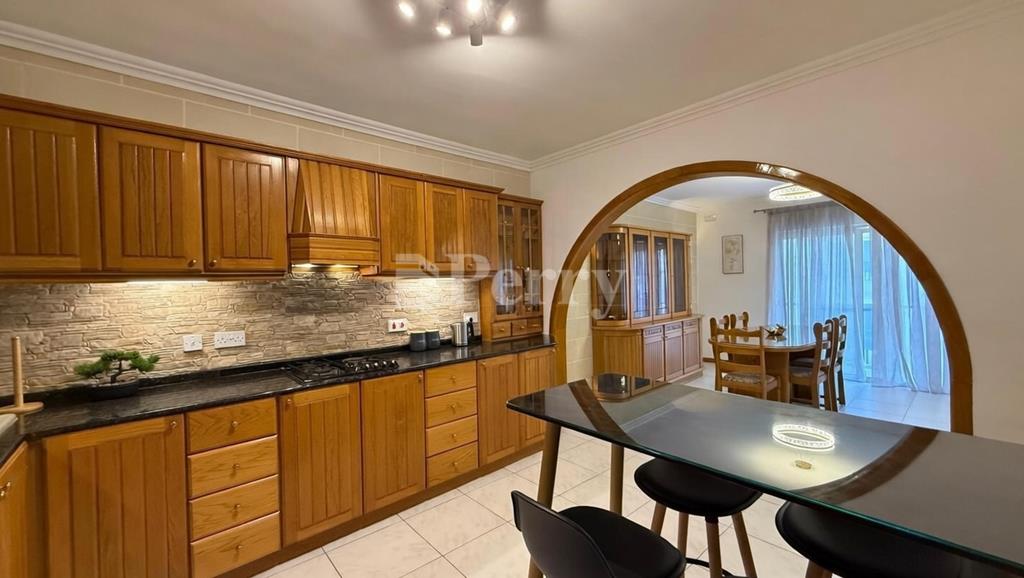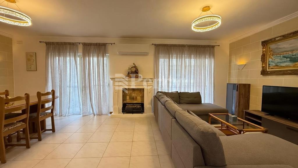This spacious, recently renovated apartment measures approximately 160 sqm and is finished to a high standard, with some of the furniture being brand new. The property comprises three double bedrooms and two bathrooms, including a master en-suite. A large entrance hall leads into a bright combined living and dining area, complemented by a separate, fully equipped kitchen. The apartment enjoys both a front and back balcony, with the rear balcony offering open, unobstructed field views, providing a quiet and pleasant outdoor space. Additional features include a dedicated laundry room, full air-conditioning throughout, and a kitchen equipped with all essential appliances and utensils An ideal home for those seeking a comfortable, well-laid-out property with generous space and open views.
