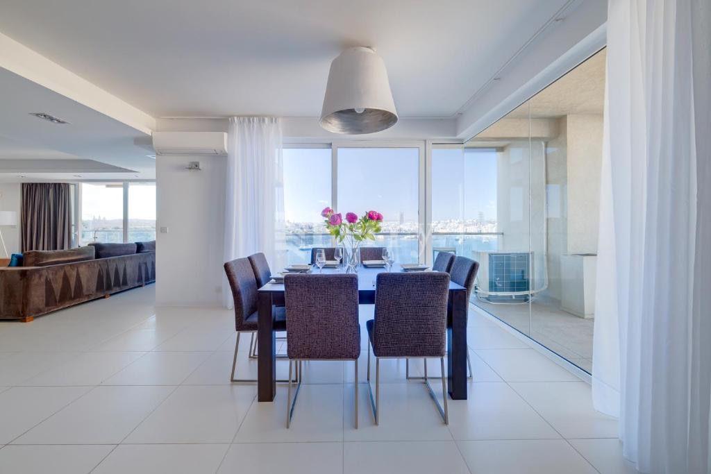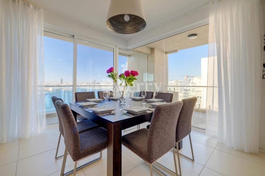 A stunning high-floor residence enjoying breathtaking panoramic views across Valletta, Manoel Island, and Sliema Creek. This exceptional property presents a rare opportunity to lease a stylish, ultra-modern apartment located in the heart of Sliema’s vibrant commercial hub, with all amenities just a short walk away. The apartment is flooded with natural light and finished to a high standard. Accommodation includes a spacious open-plan kitchen, living, and dining area opening onto generous terraces ideal for entertaining. There are three well-proportioned double bedrooms, each benefiting from its own ensuite shower room. A separate sauna room is also included and may easily be adapted into a fourth bedroom if required. Early viewing is highly recommended.