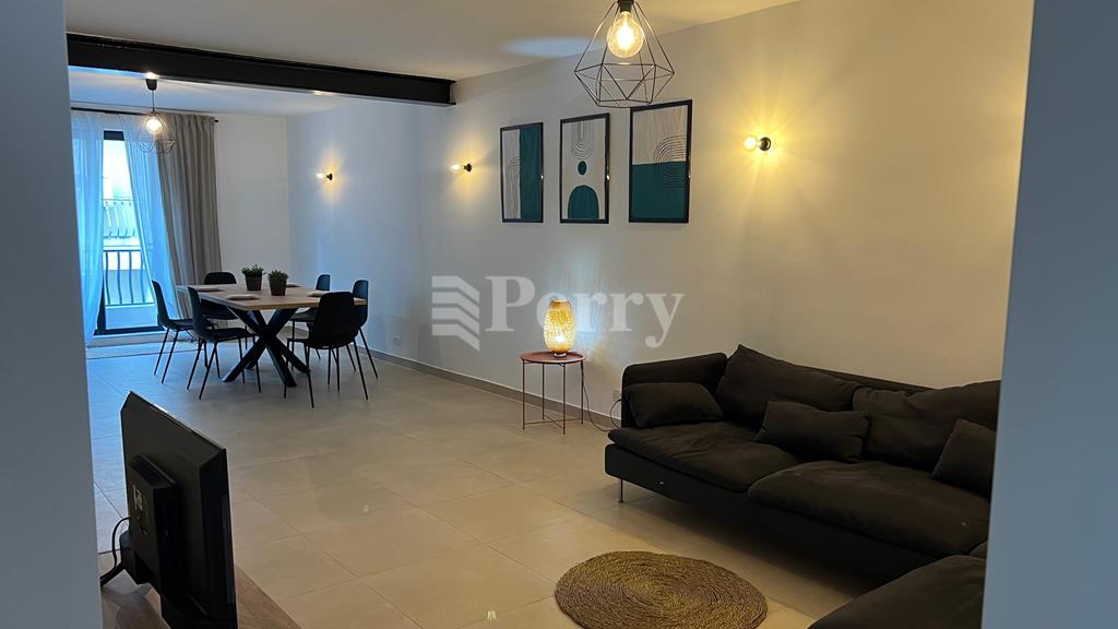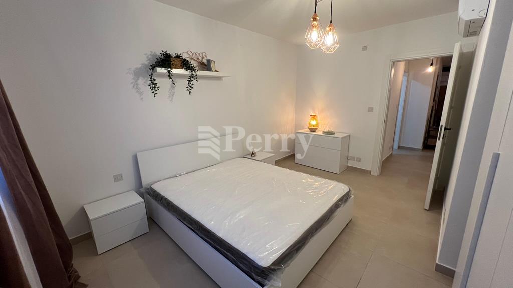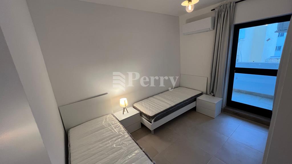 A brand new, fully furnished two-bedroom spacious apartment available approx 95 sqm, located on the 3rd floor (with lift), and features a separate modern kitchen, bright living area leading onto a front balcony, stylish bathroom, front balcony and back terrace. All furniture and appliances are brand new (3 A/C units in the bedrooms and one in the living/kitchen area, dishwasher, washing machine, microwave and a new water heater).