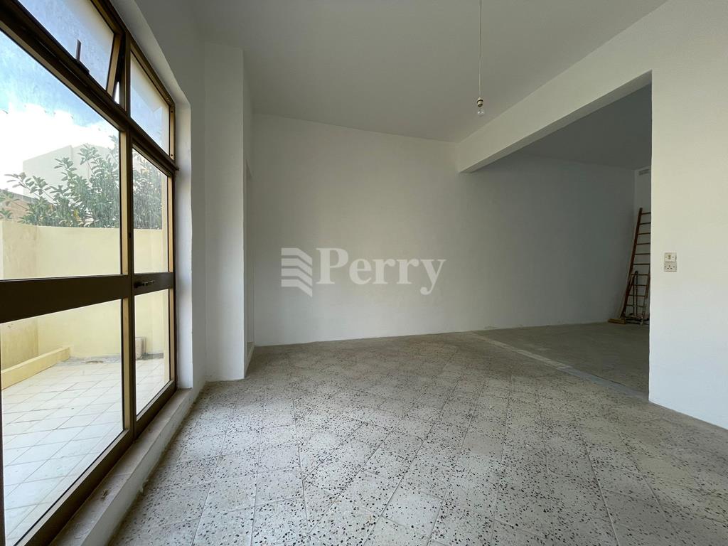 A spacious ground-floor apartment in need of refurbishment, conveniently located within walking distance from the center and all amenities. The accommodation comprises a sitting/dining room, a kitchen/breakfast area leading onto a terrace, three bedrooms, two bathrooms (with the possibility of an en-suite), and a box room/laundry. More details on request.