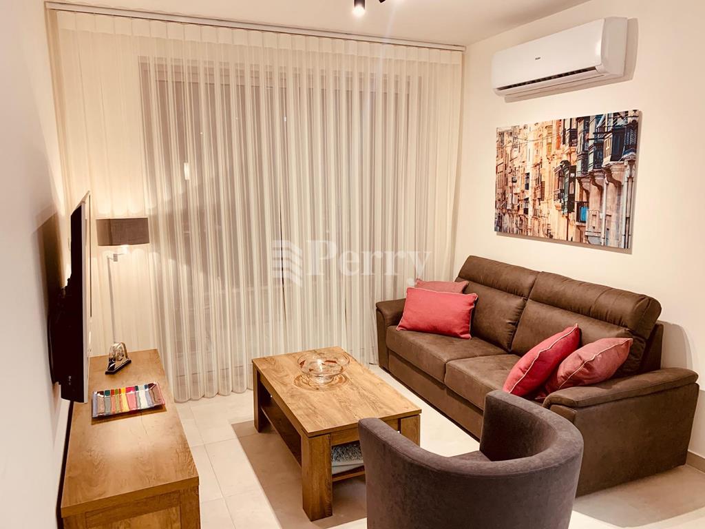 Highly finished and fully furnished fifth floor apartment forming part of this brand new and smart block of apartments, close to all amenities, public transport and so much more. Property comprises open plan (fully equipped) kitchen / living / dining area leading onto a spacious front terrace, 2 double bedrooms, 2 bathrooms (main bedroom being en-suite) and a third room equipped as office however can be converted into a Twin room. Fully airconditioned.