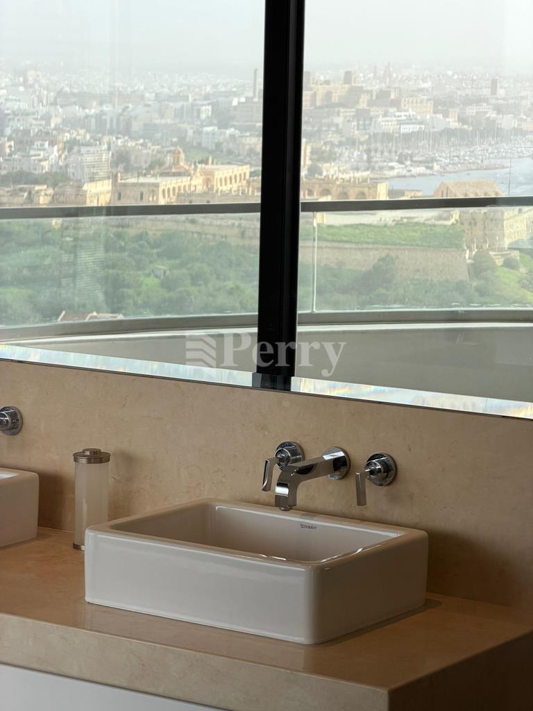 This prestigious 16th-floor seafront apartment is available for long-let, ideally suited for executive, corporate, or diplomatic tenants. Located along the Sliema seafront, just moments from Tigné Point, the residence spans an impressive 500 sqm and offers uninterrupted panoramic views of Valletta and the Mediterranean Sea, abundant natural light, and exceptional privacy. The apartment features an expansive living, dining, and TV area with bar, a very wide seafront terrace perfect for entertaining, and three large double bedrooms, all en-suite, with two offering stunning views of Valletta. Additional highlights include a private steam room, a fully equipped kitchen with breakfast area, a washroom plus two guest toilets, and underfloor heating throughout. Within walking distance to high-end retail, restaurants, and cafés, and with easy access to Valletta and the airport, this is a rare long-let opportunity that combines scale, comfort, discretion, and prestige in one of Malta’s most distinguished waterfront locations.