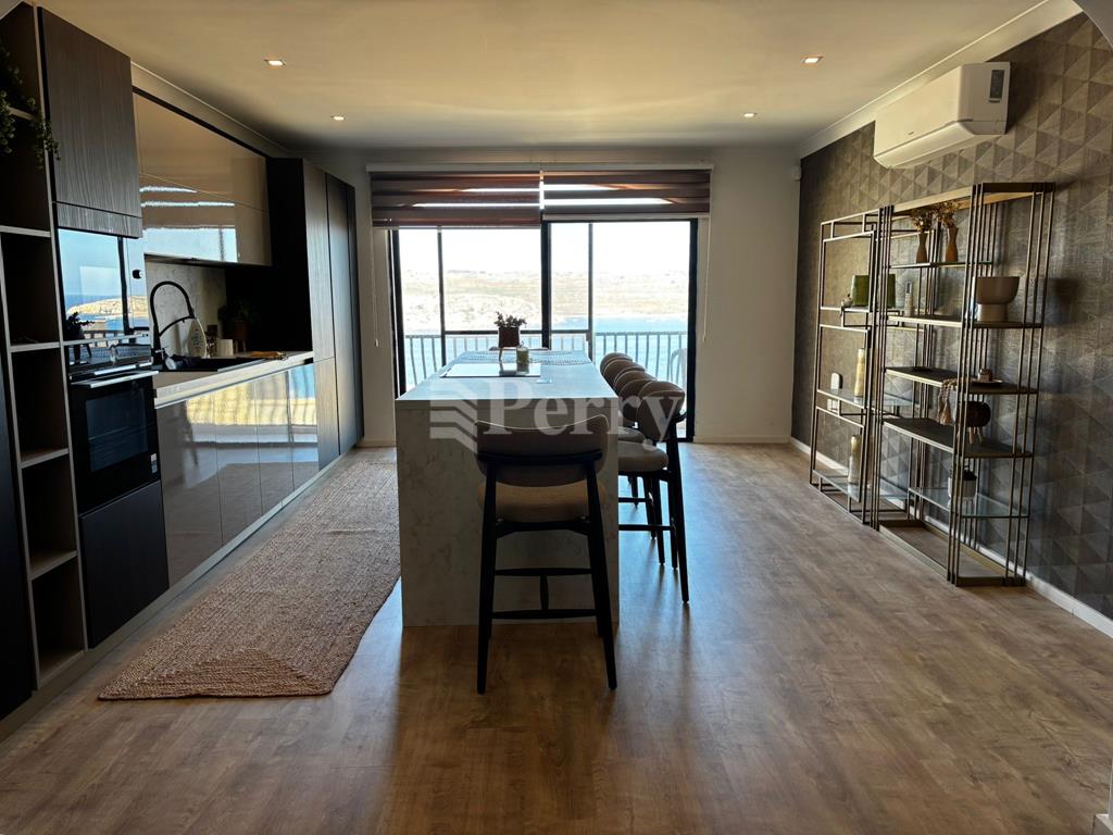 Exquisitely refurbished to the highest standards, this designer apartment offers a rare opportunity for sophisticated coastal living on St. Paul’s Bay promenade. Bathed in natural light, the open-plan layout features a bespoke kitchen with a breakfast island, seamlessly connecting to an elegant living and dining area that opens onto a terrace with panoramic sea views. The master suite is a sanctuary of luxury, complete with a spa-like en-suite and a stunning walk-in wardrobe, complemented by a beautifully appointed guest bedroom and bathroom. Fully air-conditioned and thoughtfully equipped, this exceptional property combines style, comfort, and seaside serenity—a true gem for discerning tenants.