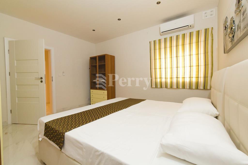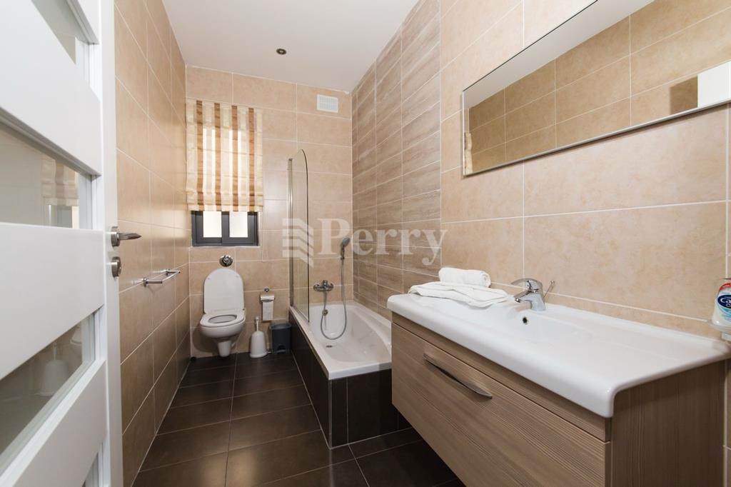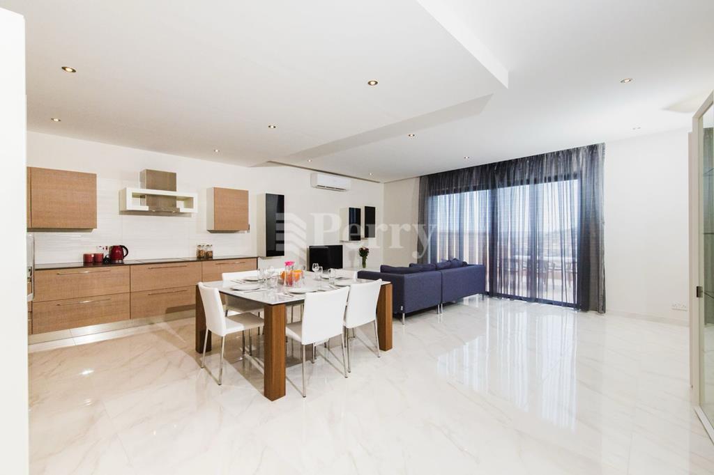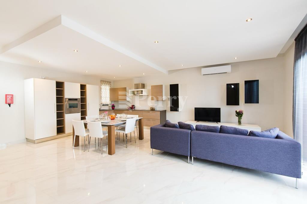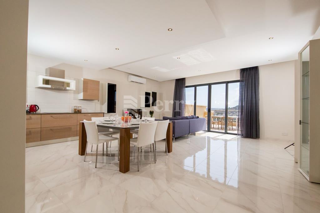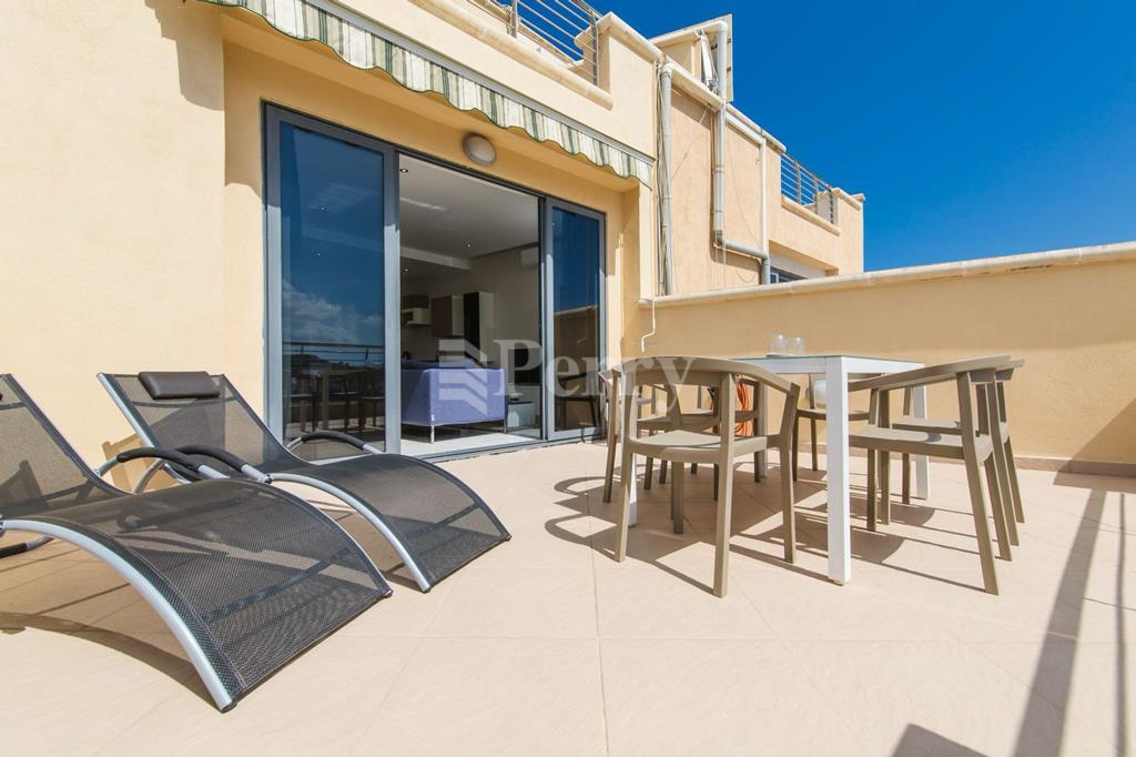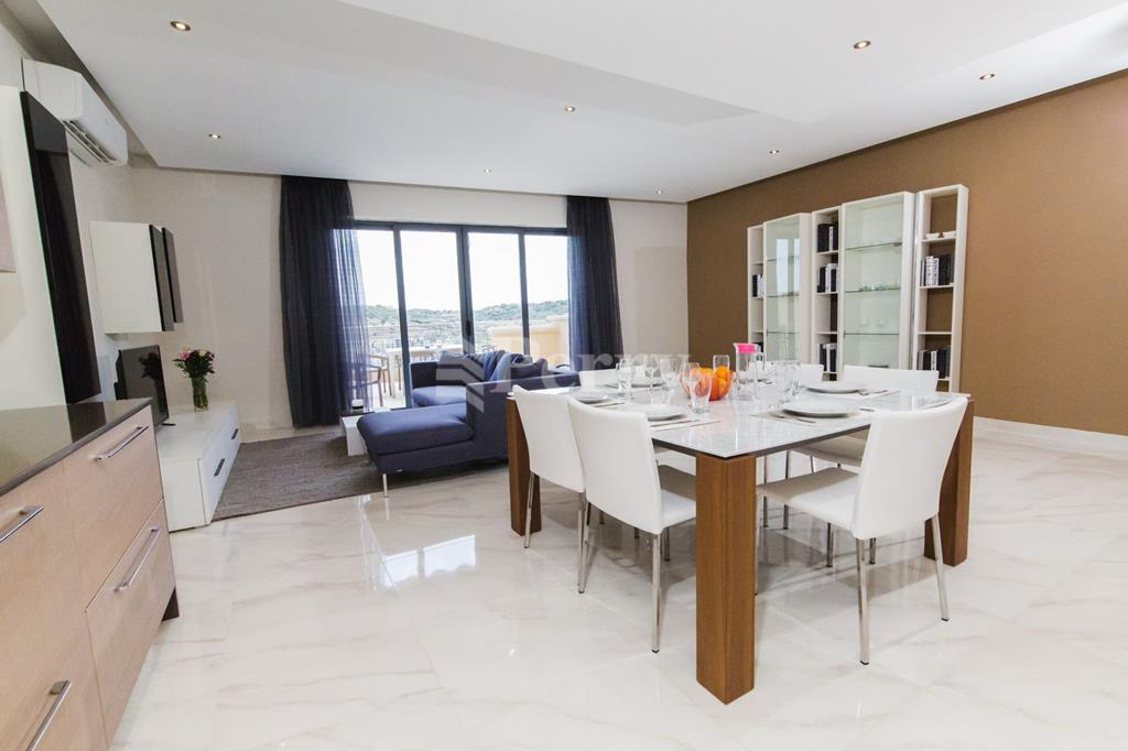 Spacious apartment has a modern finish; the apartment comprises an open-plan kitchen/dining/living room with a good-sized terrace enjoying sea views; off the open plan is the main bathroom, three double bedrooms (the master with ensuite) and a back balcony.