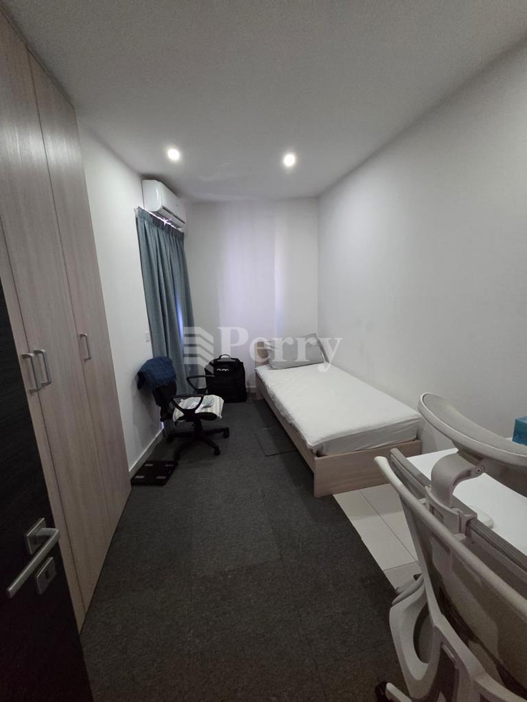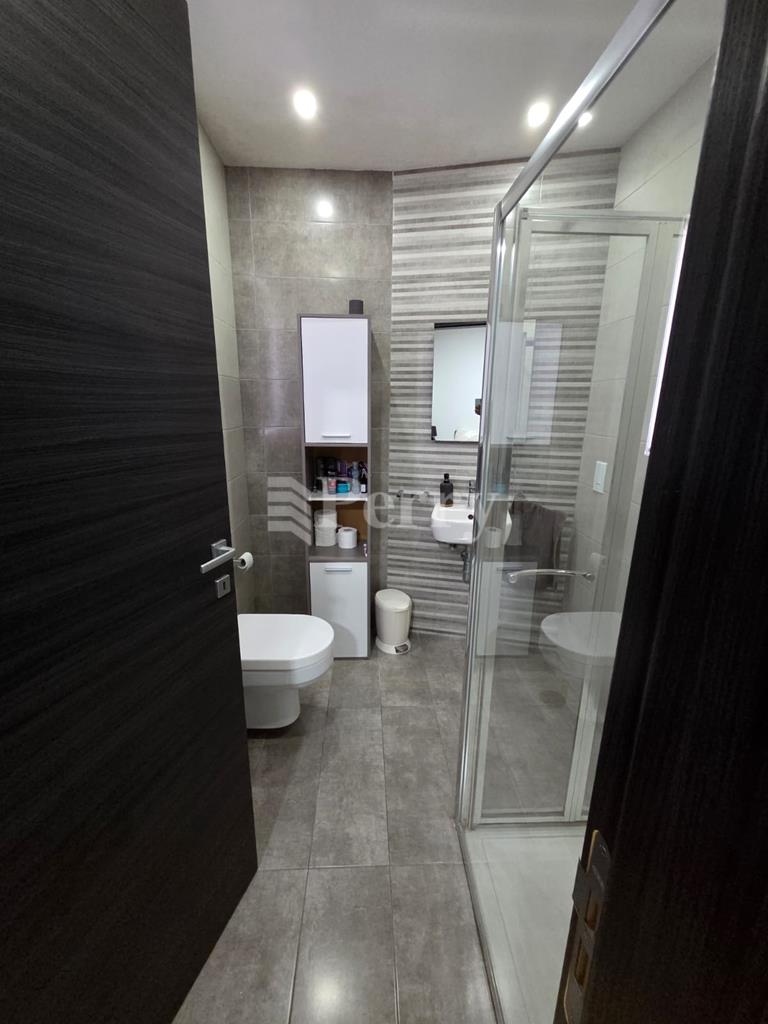 This bright and well-designed apartment features two bedrooms and two bathrooms, including a master bedroom with an ensuite shower and a main bathroom with a bathtub. The heart of the home is an open-plan kitchen, living, and breakfast area that creates a comfortable and practical space for everyday living while allowing plenty of natural light to flow throughout the apartment. Outdoor living is an important feature of the property, with a spacious front terrace ideal for lounging and entertaining, as well as an additional back terrace that offers extra private outdoor space. The second bedroom includes a single bed and a desk, allowing it to double as a study or home office. Overall, the apartment combines a functional layout, bright interiors, and generous outdoor areas, creating a comfortable and versatile living space.
