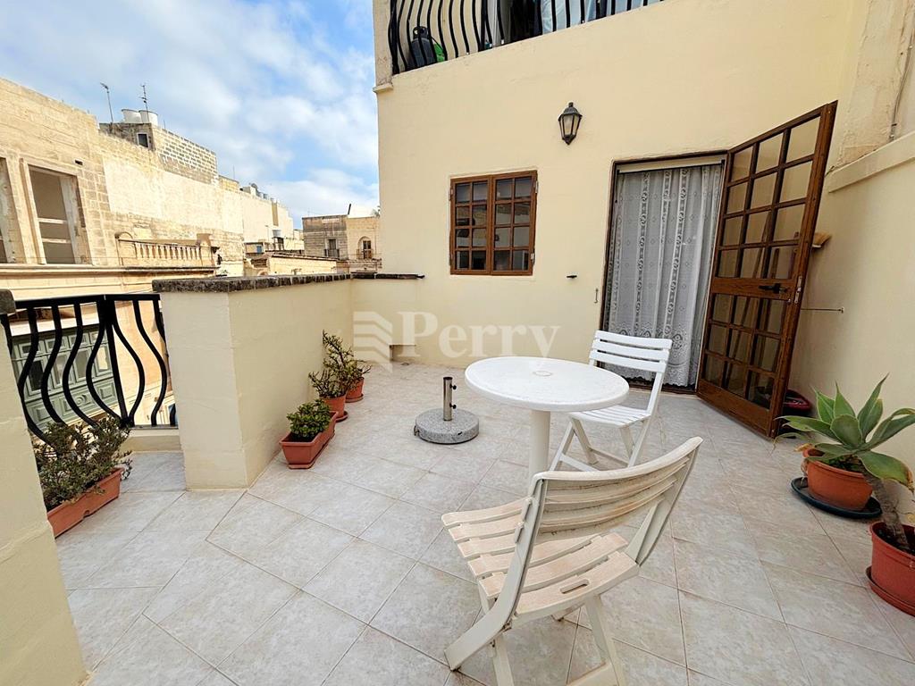 Well kept bright second floor APARTMENT just off the top of Dingli Street. The accomodation comprises a cosy kitchen / dining / living area with a good sized terrace, a shower room, a single bedroom and a double bedroom with a back balcony.