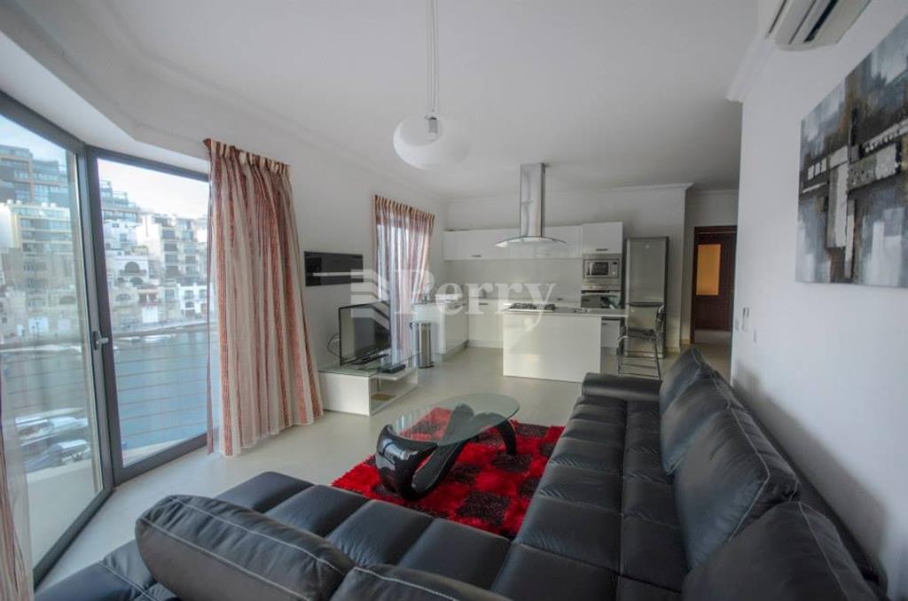Excellently located apartment in Spinola Bay, with all eateries and amenities within minutes away. This is a well-kept apartment with a modern finish, comprising an open-plan, fully fitted kitchen, breakfast, living, and dining area with a balcony and enjoying sea and bay views.  Off the open plan is the main bathroom, two double bedrooms, with the master having a shower ensuite.