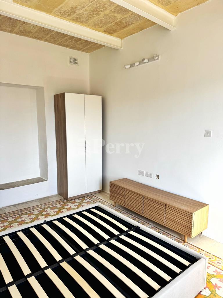 A newly finished one-bedroom townhouse located in the prime area of Paola is available for rent. The property comprises a bright and spacious bedroom, a modern bathroom, an additional separate washroom, and a fully equipped kitchen fitted with brand-new appliances. While newly finished, the townhouse retains several charming original features, including a traditional Maltese balcony, patterned Maltese tiles, exposed stonework, and an original staircase, adding character and authenticity to the home. It also benefits from a large private roof area, ideal for relaxation or entertaining, enjoying sunlight throughout the day. The townhouse is conveniently situated close to shops, bus stops, and all essential daily amenities.