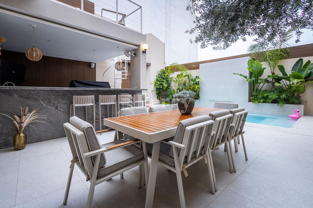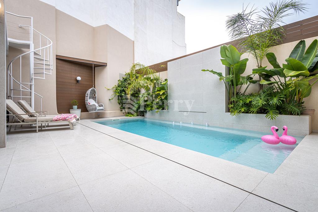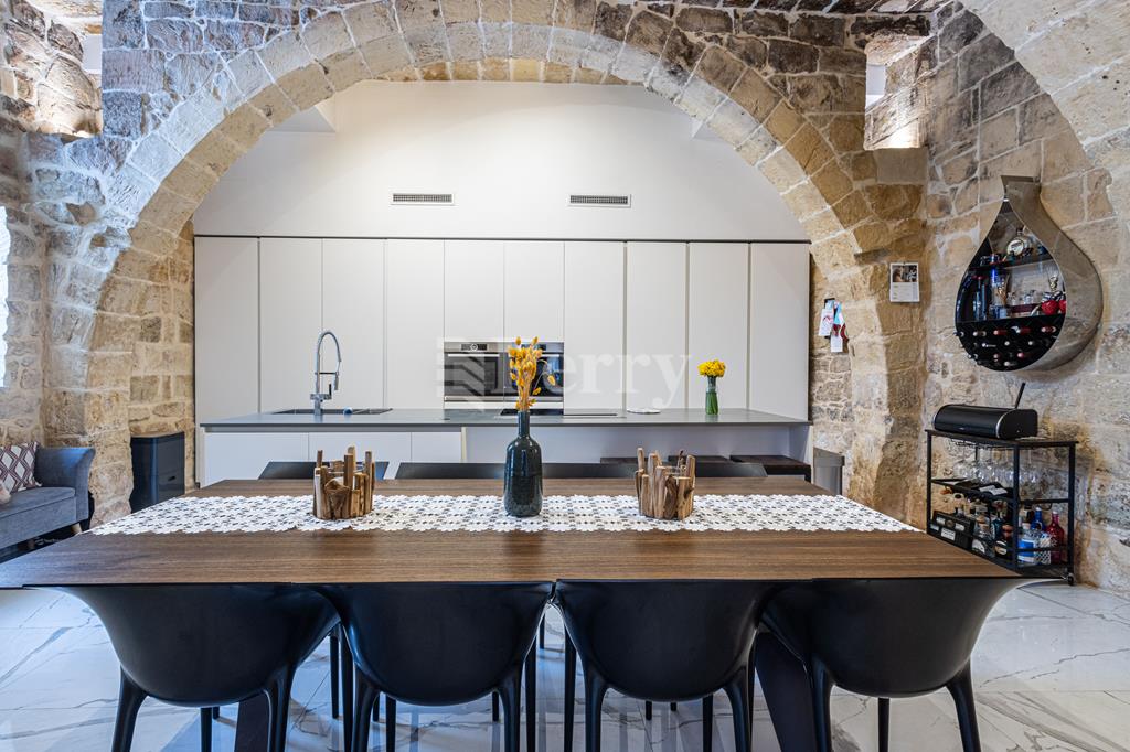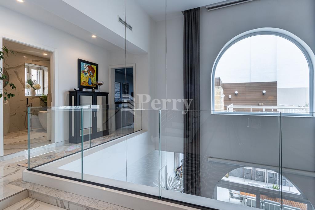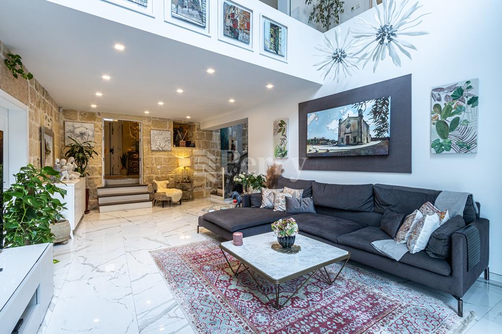 An exquisite House of Character, featuring a large outdoor pool and alfresco area, set within a quaint and tranquil village located in a UCA (Urban Conservation Area). The property boasts an abundance of authentic features, as it originally was a farmhouse, including original stone arches, animal stone troughs, high ceilings, and limestone walls, creating a wonderful harmony where historic charm meets a tastefully executed modern extension, completed with great attention to detail. This exceptional residence offers a rare opportunity to acquire a beautiful family home that provides seclusion, privacy, and character, tucked away in a picturesque alley within one of the island’s most charming villages. Accommodation comprises a welcoming entrance hall, with a piano room on one side and a stunning arched-ceiling room currently used as a cigar and spirits lounge with a library area. The property further enjoys a spacious sitting room with cathedral-height ceilings, opening onto a generous outdoor entertaining space featuring a large heated swimming pool and an alfresco area with outdoor kitchen and dining facilities, ideal for those who love to entertain. Adjacent to the sitting room is a separate, fully fitted and equipped kitchen/dining room, complete with top-quality appliances. The property offers four bedrooms and five bathrooms, including a master suite with a walk-in wardrobe and an en-suite bathroom. Additional amenities include a soundproofed cinema room, a spacious laundry room, and an outdoor roof-level terrace. Further benefits include solar panels, solar water heater, underfloor heating in bathrooms, a functional wooden pallet fireplace and a one-car garage. This small and quaint village offers beautiful natural scenery, a rich historical and religious cultural heritage, fascinating legends, and a peaceful rural lifestyle. Qrendi stands as a timeless example of a village that has endured for centuries. Its captivating old village core—where this property is discreetly nestled within an alley—has remained largely unchanged despite modern development on the outskirts, and is home to some of Qrendi’s most interesting and treasured landmarks.