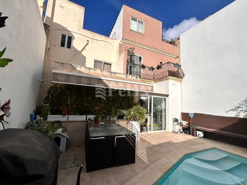 Set within the heart of this sought after village, in a UCA area, one finds this newly refurbished townhouse with a street level interconnecting 2 car garage set on a plot of 185sqm.  The accommodation consists of a hallway leading onto a spacious living room and dining area, a guest bathroom, and a kitchen and breakfast area. There is also a basement room that could be converted into a gym or games room. A marble staircase leads upstairs where one finds three large double bedrooms, one of which has an ensuite, a main bathroom and a large back terrace. There is also a very spacious washroom on the roof.  The property also features a spacious swimming pool with a deck area that is a wonderful space for entertaining. Must be seen.