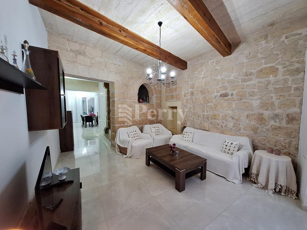 This charming House of Character is located in the heart of Ħal Lija village and is spread over three levels. The property features a welcoming living room and an open-plan kitchen with dining area, which leads to a good-sized outdoor space of approximately 3m x 1m. There is a guest toilet, and three bedrooms, each with its own en-suite bathroom, including one with a private terrace and another with a private balcony. Additional features include a roof terrace and a dedicated washing/laundry area. Please note that the property is not pet-friendly.