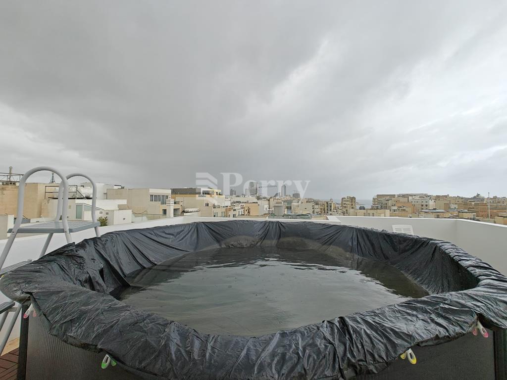 A newly modernised TOWNHOUSE situated in this quiet residential area, spread over 350sqm of living space and only moments away from the seafront. Accommodation comprises of a welcoming reception hall, a spacious kitchen/living/dining and guest toilet. Underlying one finds a four-room basement having flexible space for a home gym, cinema and laundry/storage. On the first and second floors, one finds 4 bedrooms, a living area and 2 bathrooms. The Penthouse level offers studio potential, leading onto a terrace with access to an overlying pool taking in the surrounding town and distant sea-views. Must be seen!