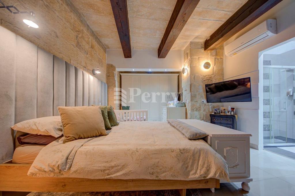 A well converted house of character with many authentic features such as wooden beams arch ways, kileb and much more, entering through a wide and welcoming hallway leading to the kitchen breakfast, having a separate living room, leading to a central courtyard with BBQ area and table for 6, moving up the comfortable stairway to the first floor you can find 3 lavish bedrooms main having ensuite bathroom and having a comfortable landing leading to the roof garden great for entertaining. Most walls are on bare stone, emitting the beauty and charm of natural stone, while having a feature wall enhancing the character.