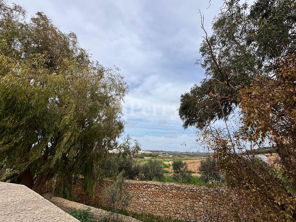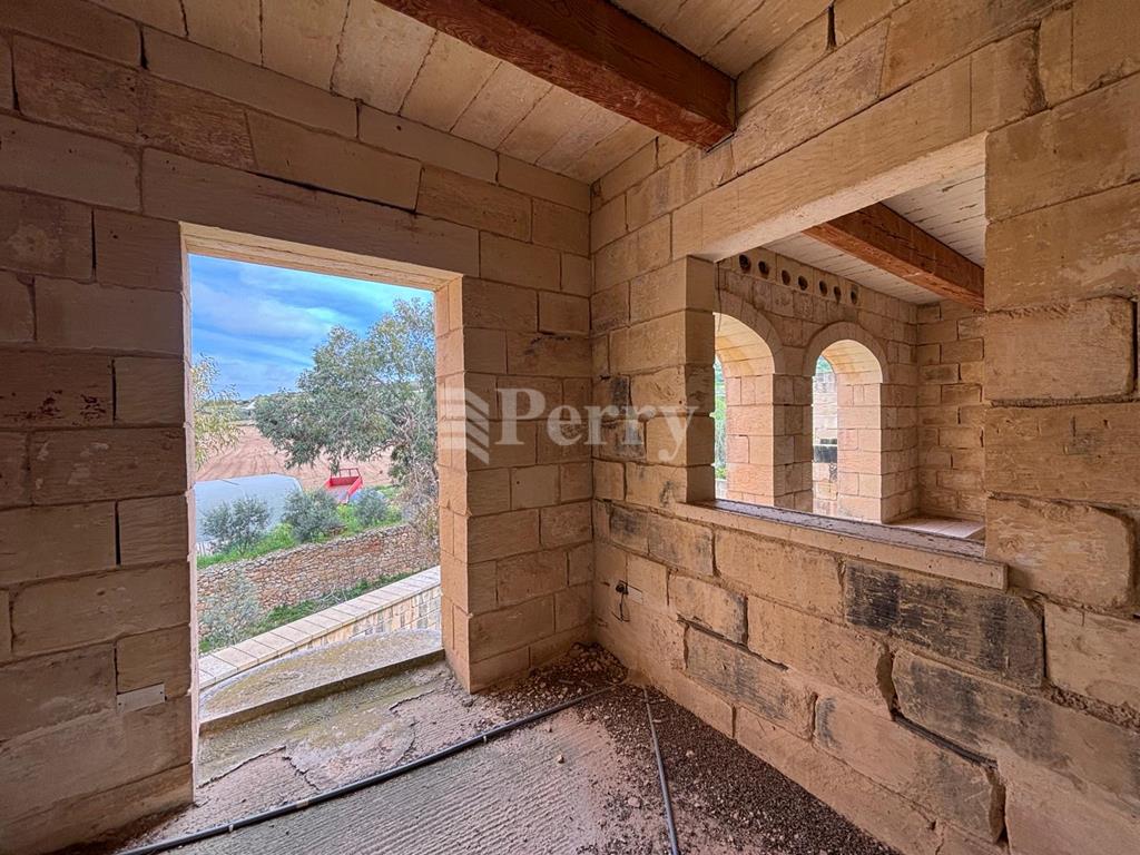We are delighted to present a rare opportunity to acquire this country house set on a plot of approx 500 sqm in a wonderful rural setting, close to the charming village centre of Mgarr. This property is already structurally converted to a very high standard and gives a prospective buyer a rare opportunity to finish it to one’s specifications. This house features a lovely, wide façade, an entrance hall with sizable living areas which lead onto a garden with space for a private swimming pool. Upstairs, one finds four bedrooms all with en-suite bathrooms and enjoying views of the surrounding countryside and the Mediterranean sea in the distance. Also complementing this property is a 4/5 car garage, which is interconnected with the house, and there is also space to include an elevator. This property is an absolute dream of a place, offering a lot of space, rural serenity and endless character with many of its charming features retained.