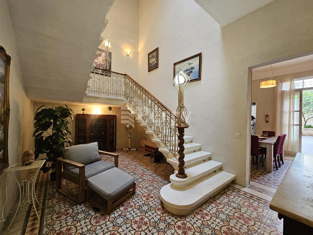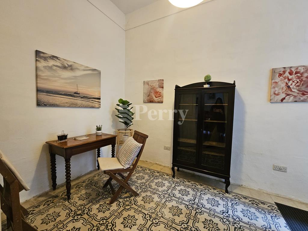 A charmingly finished 150-year-old townhouse, ideally located just seconds away from The Strand in Sliema, boasts exquisite period features blended with a touch of modern design. At the ground floor level, the property comprises an entrance hall, a private sitting room, a kitchen/breakfast area, a guest toilet, and a good-sized yard with a small garden. On the first floor, one finds a spacious double bedroom with an en-suite shower and storage. Also on this level is a second, smaller double bedroom, ideal as a guest room or study. Ideally situated close to Balluta Bay and all amenities, shops and restaurants.