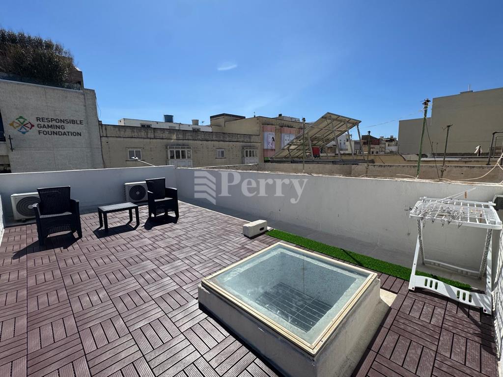 Situated in the heart of Birkirkara, this recently renovated TOWNHOUSE offers bright and versatile living spaces throughout. The ground floor comprises an entrance hall, a lateral living room (currently utilised as a third bedroom), an open-plan kitchen, living and dining area, a guest bathroom, and a backyard. On the first floor, one finds two double bedrooms, the main featuring an en-suite, as well as a box room. A spiral staircase leads to a roof terrace complemented by a spacious laundry room. This freehold property also benefits from approved permits to construct an additional two floors, making it an excellent opportunity for both homeowners and investors.