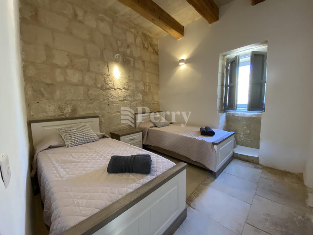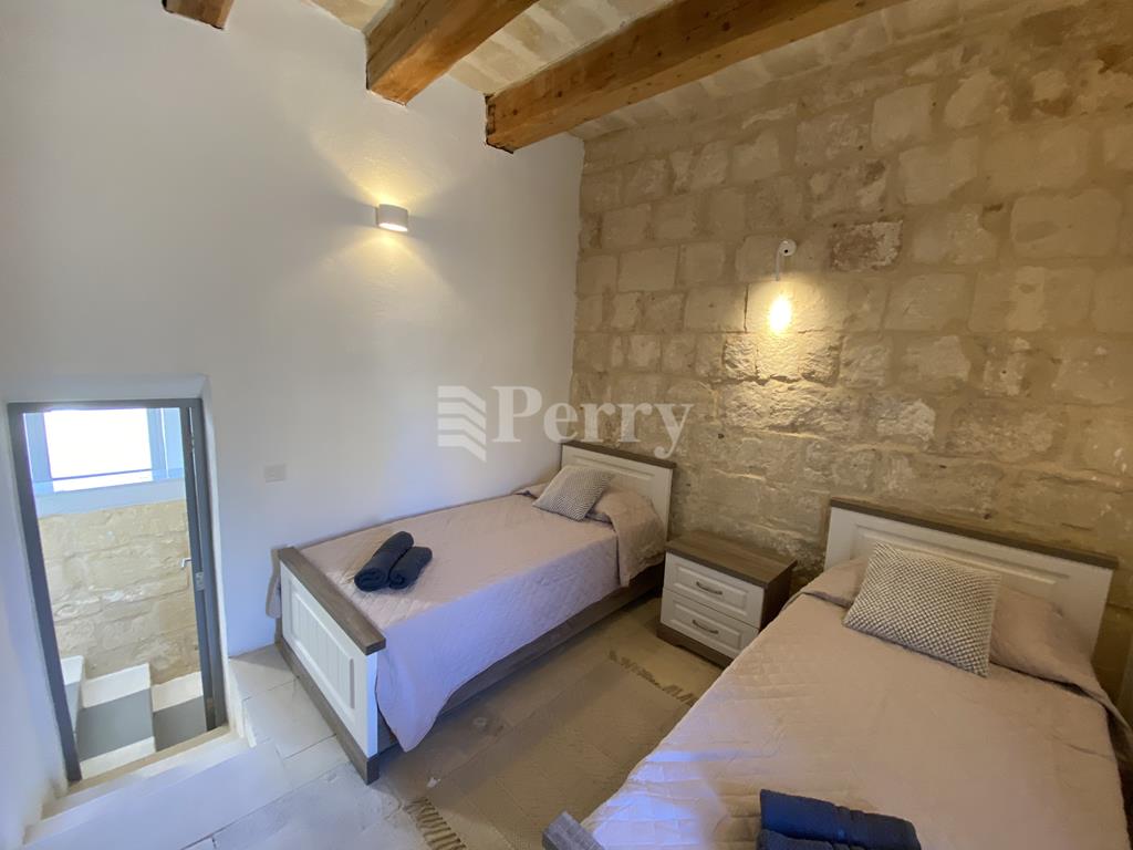 Nestled in a tranquil setting, this beautifully converted house of character seamlessly blends traditional charm with modern comforts. Featuring two spacious bedrooms and three well-appointed bathrooms, the property offers both style and functionality. Original architectural details such as exposed stone walls, wooden beams, and arched doorways create a warm and inviting atmosphere throughout. The open-plan living and dining area is perfect for entertaining, while the fully equipped kitchen caters to everyday convenience. Each bedroom is thoughtfully designed, with ample natural light and en-suite facilities for added privacy. Additional features may include a private courtyard, terrace, or roof space—ideal for relaxing or hosting guests. Ideally located close to San Anton Gardens, the property enjoys easy access to one of Malta’s most beautiful green spaces, while still being within reach of everyday amenities. Perfect as a residence, holiday retreat, or investment opportunity, this unique home offers character, comfort, and an excellent location.