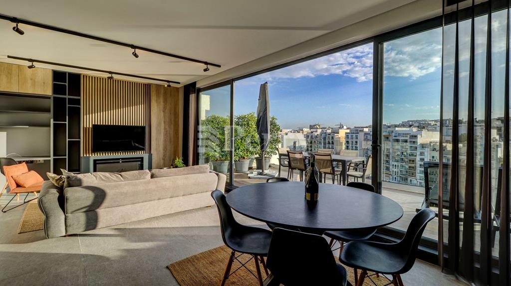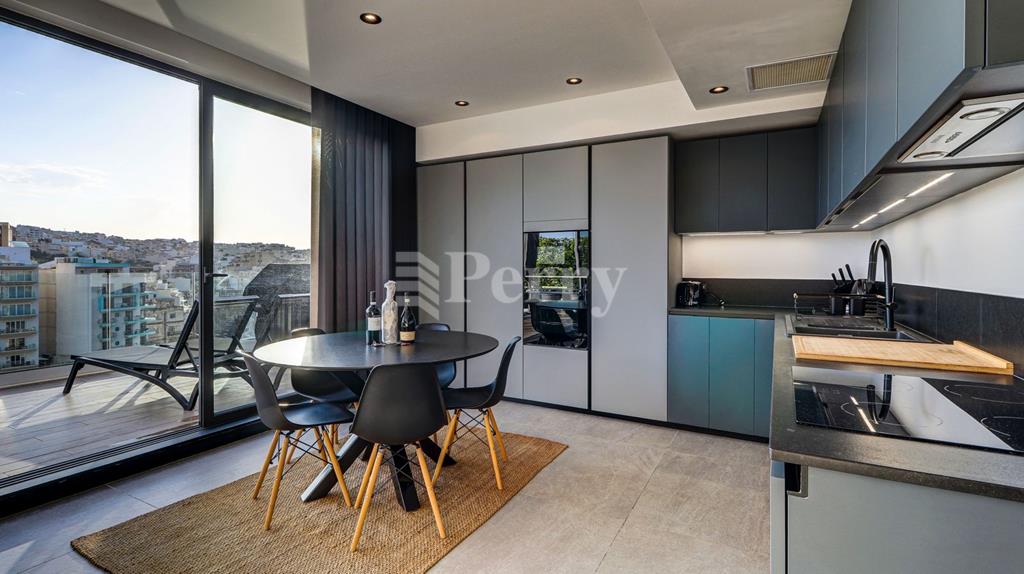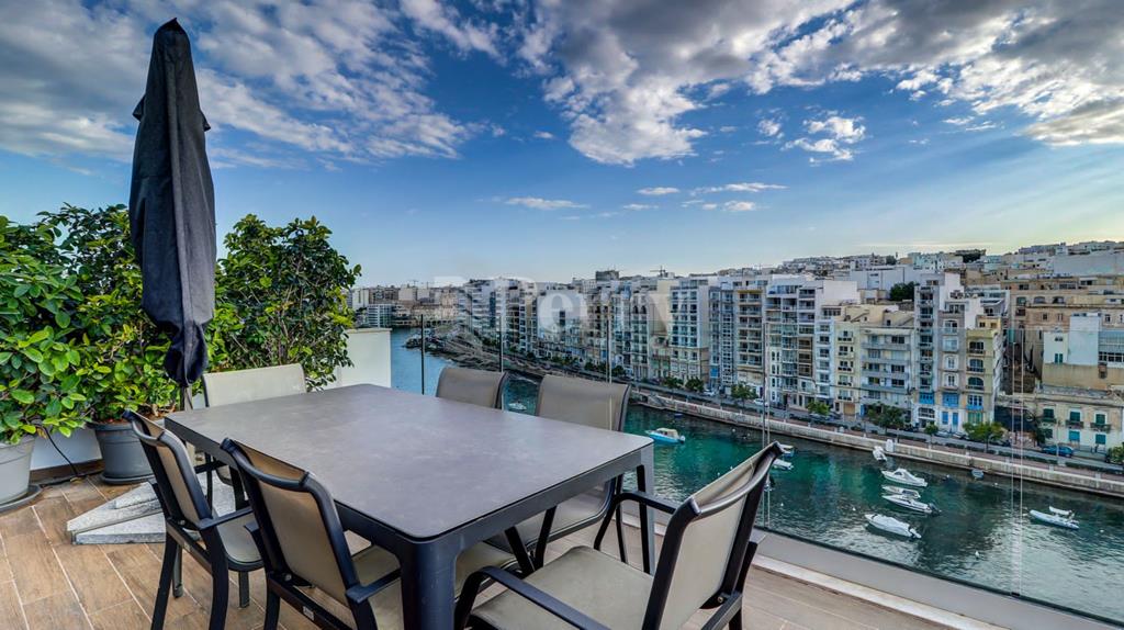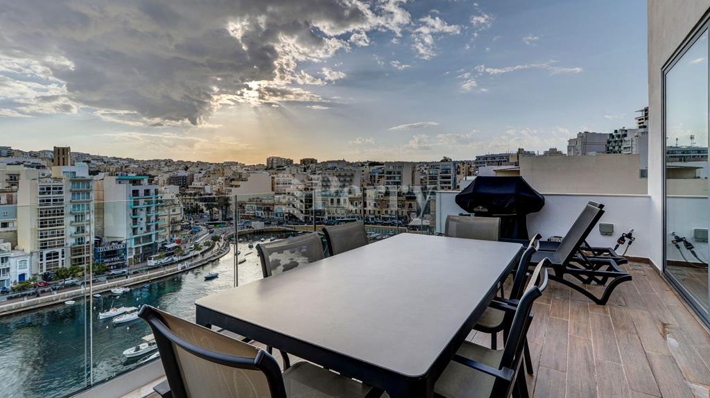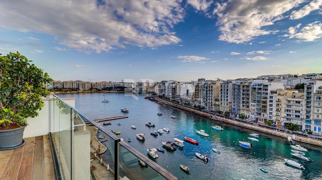 Brand new luxury sea front Penthouse beautifully positioned with a superb outlook overlooking the stunning views of Spinola Bay. This stylish property has been tastefully furnished to the highest of standards, offering a spacious layout and plenty of natural light. This high floor property comprises of an open plan fully fitted and equipped kitchen / living / dining area leading onto a large front terrace taking in breath-taking sea views of the picturesque Spinola Bay. Furthermore, two double bedrooms leading onto another sizable back terrace and a main bathroom. Property is fully airconditioned and fully equipped and is truly one of a kind.