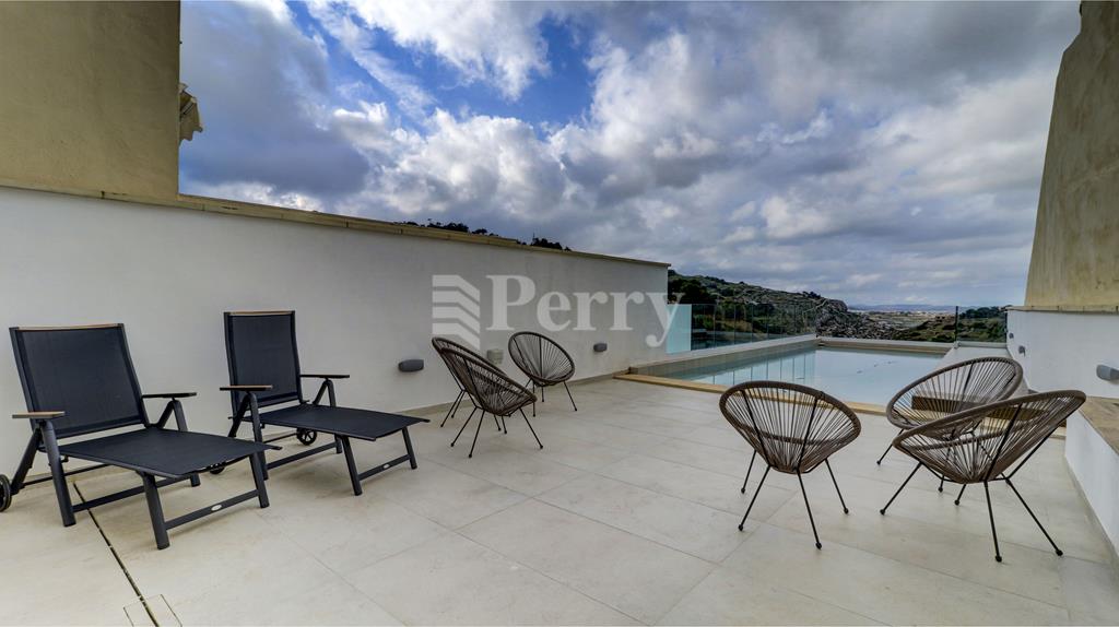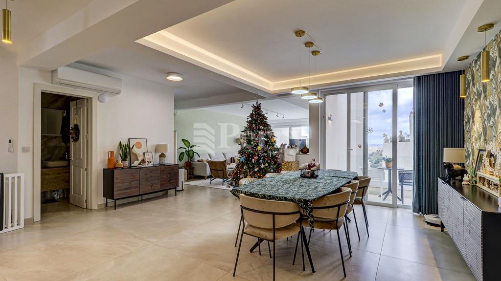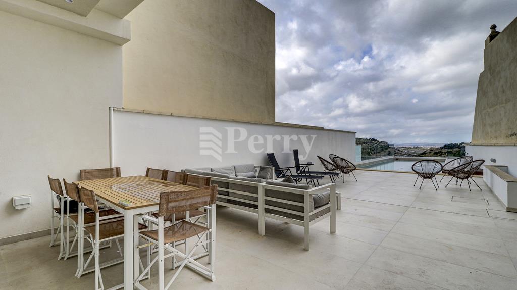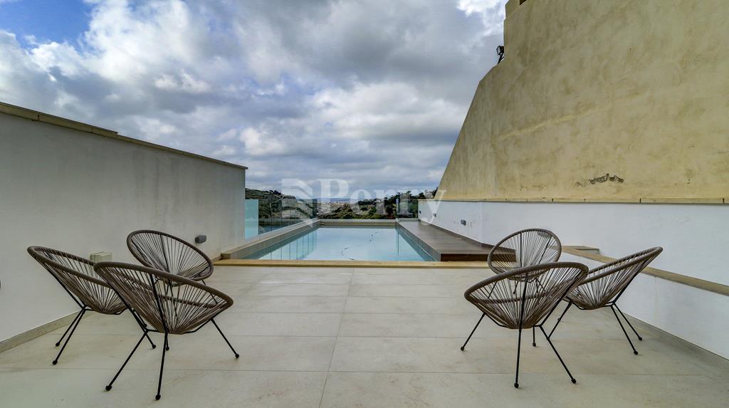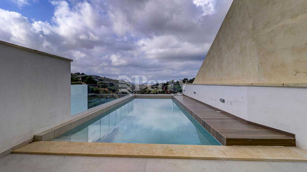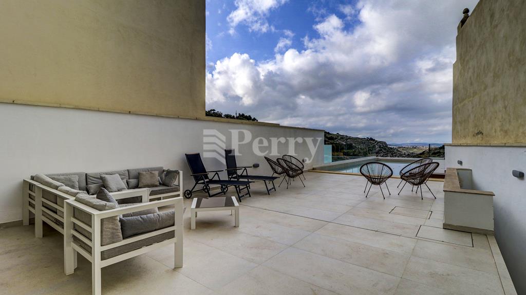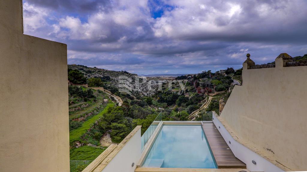 Introducing a truly exceptional newly built villa, this exquisite 5-bedroom residence is a masterpiece of modern architecture, nestled within the prestigious Madliena neighbourhood. Poised on elevated grounds, it commands breathtaking panoramic views of the idyllic Madliena Valley, with sweeping vistas extending across the verdant countryside and shimmering sea all the way to Gozo. Boasting an enviable location just a stone's throw away from the vibrant hubs of St. Julian’s and Portomaso Marina, this property offers the perfect blend of tranquillity and accessibility. Situated on a sprawling 550 square meter plot with dual street access, the villa showcases a total internal area of 400 square meters, meticulously crafted to epitomize luxury living. The heart of the home is the expansive living space, spanning 120 square meters and featuring a dramatic double-height lounge area that exudes an air of grandeur. Four generously proportioned double bedrooms, each complemented by private bathrooms and terraces, invite residents to bask in the beauty of their surroundings. An additional guest apartment, a versatile space ideal for nanny/personnel quarters, home gym or cinema, along with a convenient laundry room, further enhance the functionality of this distinguished residence. Designed to seamlessly integrate indoor and outdoor living, the pool level offers a separate lounge area that spills onto the 100 square meter pool deck, crowned by a magnificent 10-meter infinity pool. Here, residents can indulge in leisurely afternoons amidst the tranquillity of the countryside and the mesmerizing vista of the sea, stretching to the horizon and beyond. The property is enveloped by extensive soft landscaping, creating a serene sanctuary that harmonises effortlessly with its natural surroundings. Thoughtfully curated with every convenience in mind, discreet service areas have been seamlessly incorporated into the open-plan design, ensuring both elegance and practicality. A standout feature is the spacious 3-car garage, accompanied by an additional 3-car carport, offering ample space for the discerning homeowner. Presented fully furnished and equipped, this villa epitomises refined luxury living at its finest, promising an unparalleled lifestyle of sophistication and comfort.