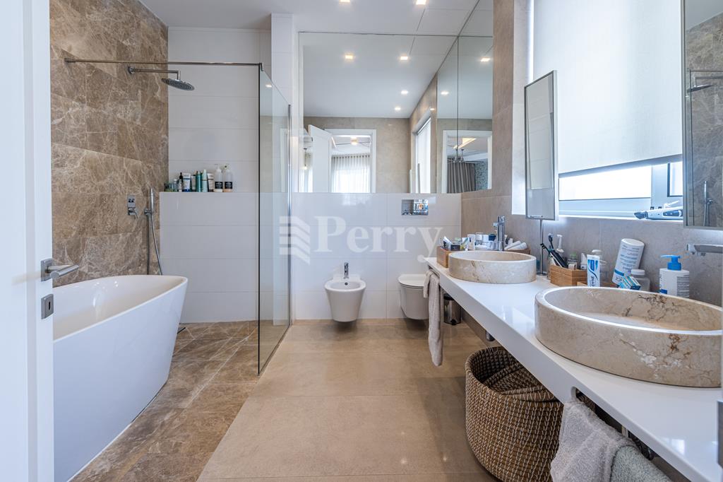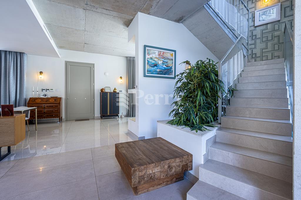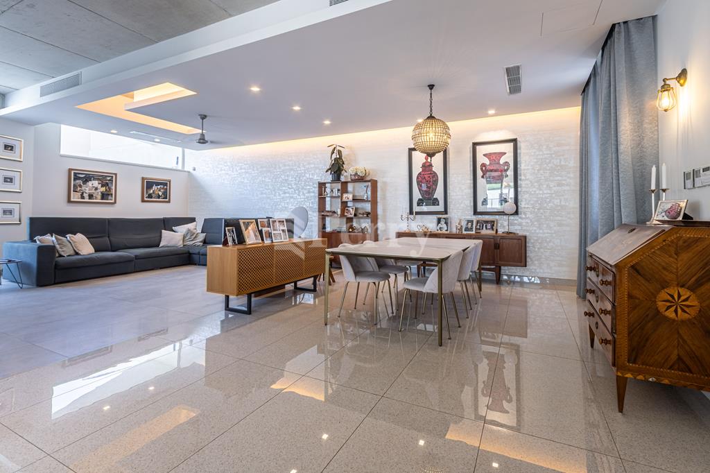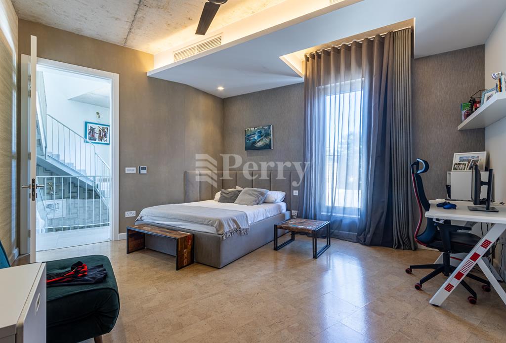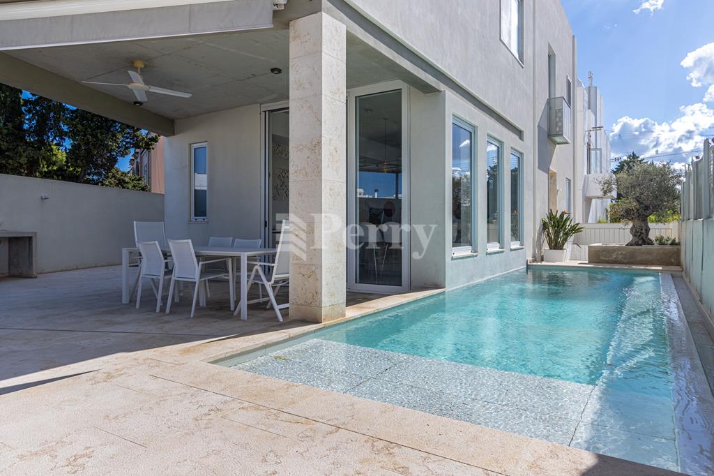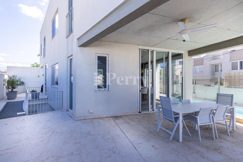 We are delighted to offer for the first time to the market,  this extraordinary and distinguished modern villa of architectural significance.  This corner residence offers a magnificent sculptural interplay of glass (flooding the interiors with natural light), great stonework and geometry - a fantastic modernist composition.  The location within a picturesque villa area of this most sought after and privileged neighbourhood also benefits from being within close proximity to all the amenities a family might require - including leading schools, sports clubs making the property an ideal and convenient home.  Also within close walking distance is a wonderful array of eateries and entertainment options as well as the seafront promenade. The property spans over 650sqm with approx. 550sqm of internal space and 124sqm of external space including a private swimming pool.  The property is spread over three main floors; one enters into a lovely open plan kitchen/sitting/dining area with large glass apertures leading to the outdoor area ideal for al fresco dining by the swimming pool.  This main floor also includes a study area and guest bathroom.  Downstairs one finds a most spectacular open plan multipurpose room covering the whole footprint of the plot currently being used as a gym and kids play area/games room,  also leading out onto a sizable courtyard cleverly designed to allow natural light to enter this level.  Also at this level is an interconnected 2-car garage.  On first floor level one finds three double bedrooms all with en suite bathrooms and the larger than usual master bedroom benefits from a great wardrobe space.  The bedrooms also feature underfloor heating and all modern comforts.   At roof level the property includes a sizable room complete with bathroom and kitchen facilities which could be used as a self-contained flatlet for guests or a live-in helper.  This unique FREEHOLD home offers a lifestyle for the most discerning and thoughtful owners.  This home is being offered finished to very high standards and ready to move into.  Must be seen to be fully appreciated.