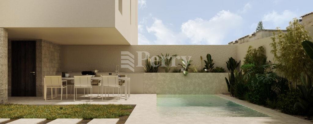 This exceptional SEMI-DETACHED VILLA is being offered at pre-construction stage in shell form, presenting a rare opportunity to create a bespoke residence tailored to your own style and requirements. Built on a generous plot measuring approximately 225sq.m., the property is planned over multiple levels and enjoys an impressive layout designed for modern family living. The accommodation is set to include a spacious open-plan kitchen, living and dining area leading onto an extensive outdoor entertaining space with swimming pool, ideal for relaxing or hosting guests. The upper floor is designed to feature three double bedrooms, each with its own ensuite, including a principal suite with walk-in wardrobe. Complementing the home is a large underlying garage, games room, storage areas, lift access to all floors, washroom and roof level with ample outdoor space. Freehold.
